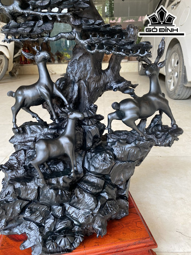 Tượng Dê Phong Thủy Gỗ Mun Sừng Cao 62 Ngang 47 Sâu 28 (cm)