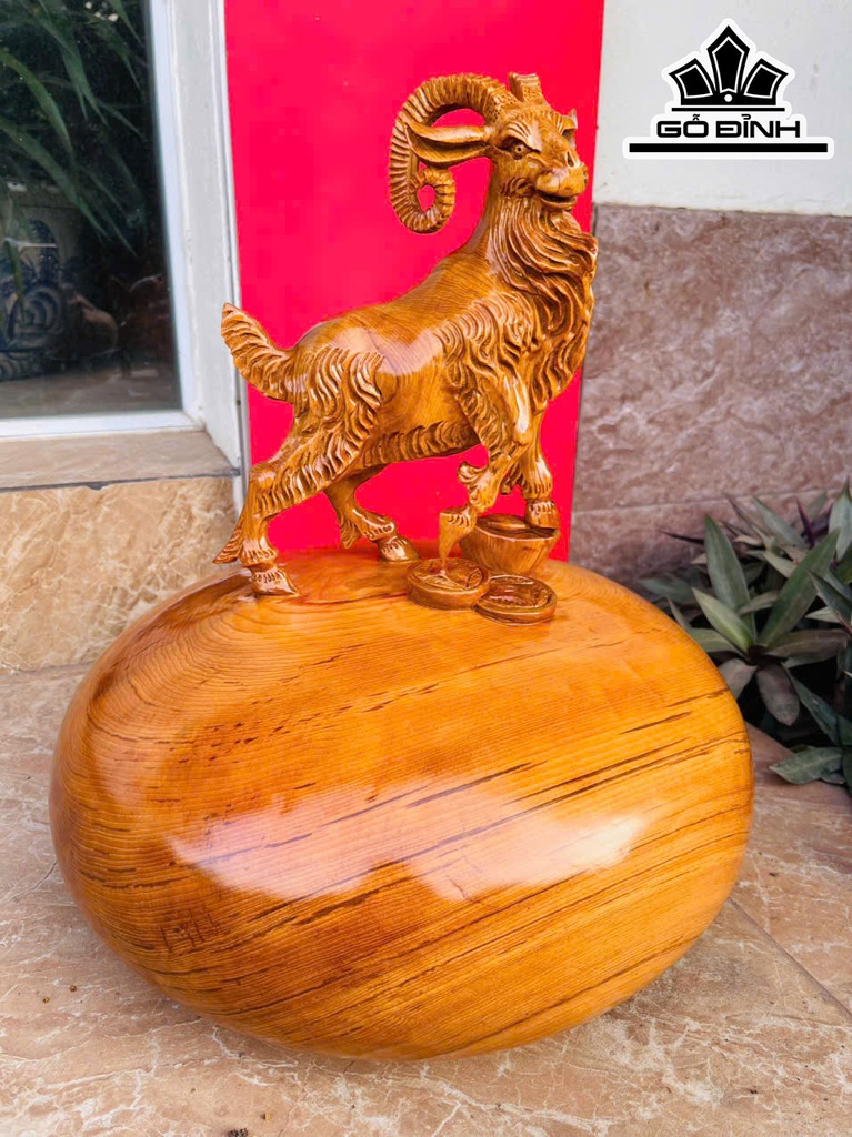 Tượng Dê Phong Thủy Gỗ Ngọc Am Cao 45 Ngang 38 Sâu 38 (cm)