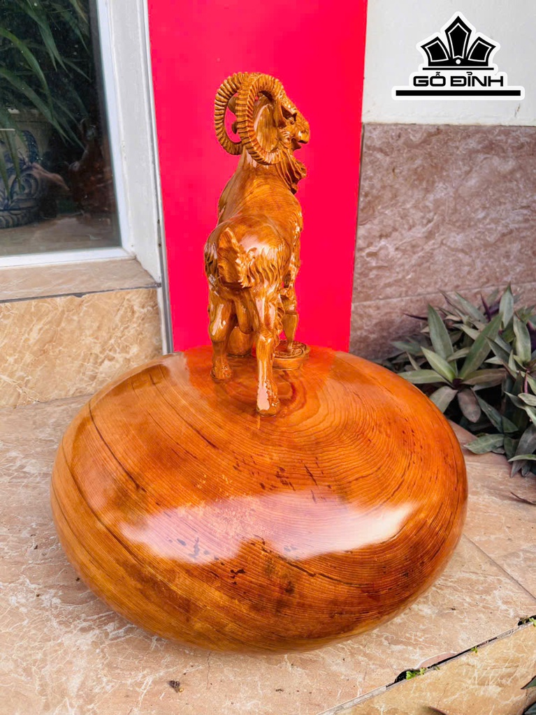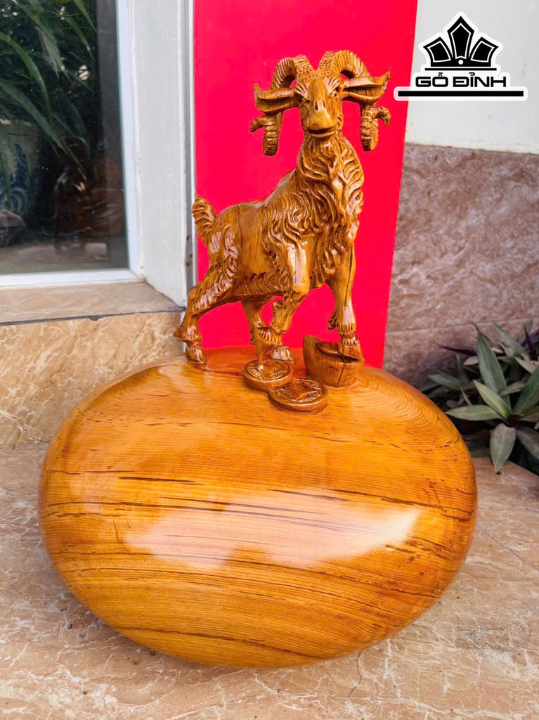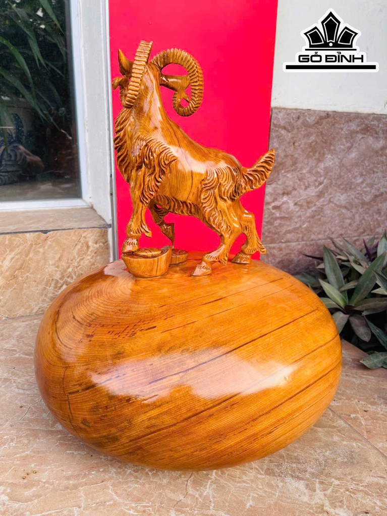 Tượng Dê Phong Thủy Gỗ Ngọc Am Cao 45 Ngang 38 Sâu 38 (cm)