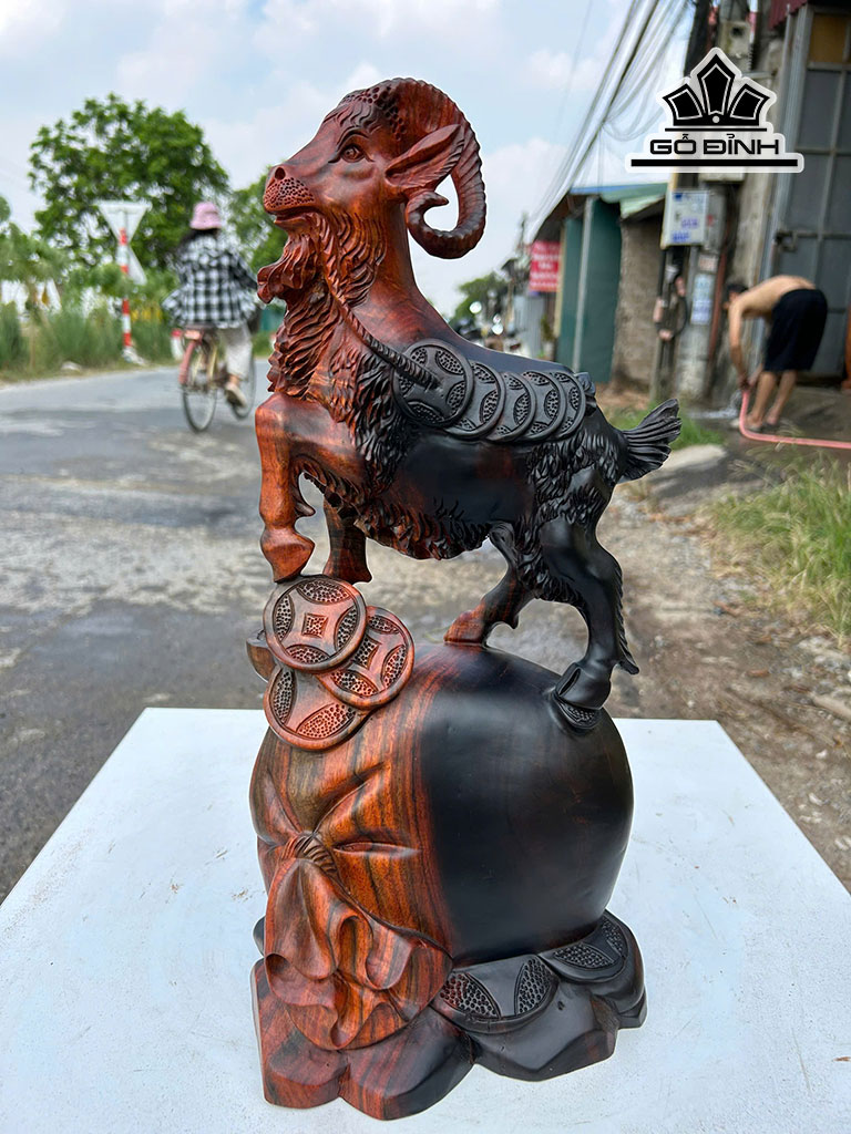 Tượng Dê Phong Thủy Gỗ Trắc Cao 43 Ngang 20 Sâu 16 (cm)