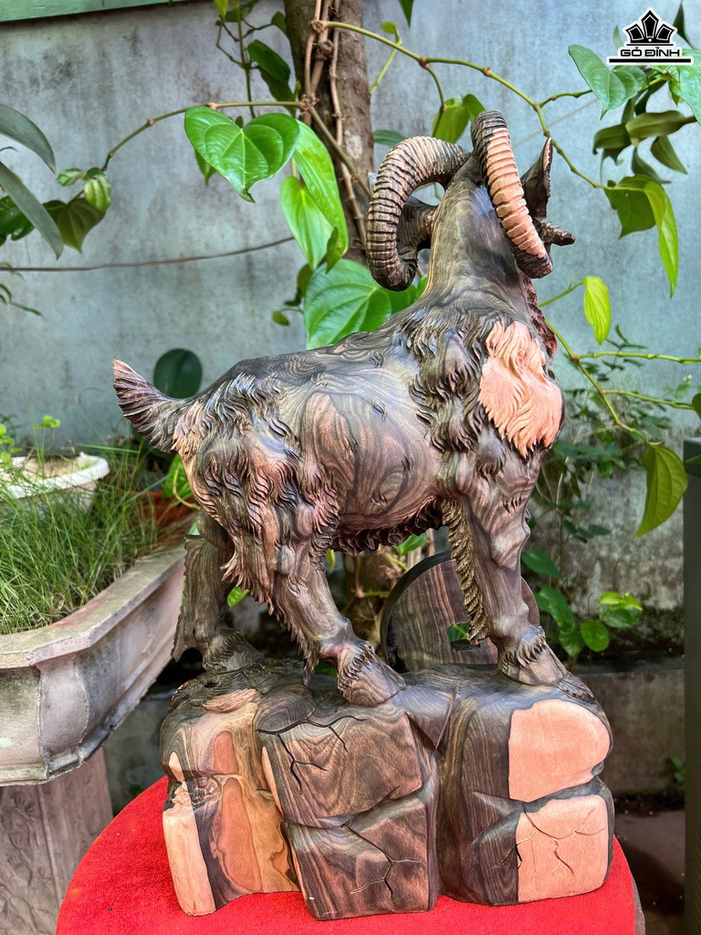 Tượng Dê Tài Lộc Gỗ Mun Hoa Cao 50 Ngang 28 Sâu 14 (cm)