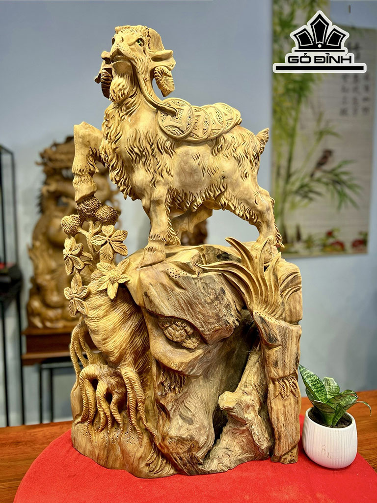 Tượng Dê Tài Lộc Nhân Sâm Gỗ Ngọc Am Cao 85 Ngang 50 Sâu 19 (cm)
