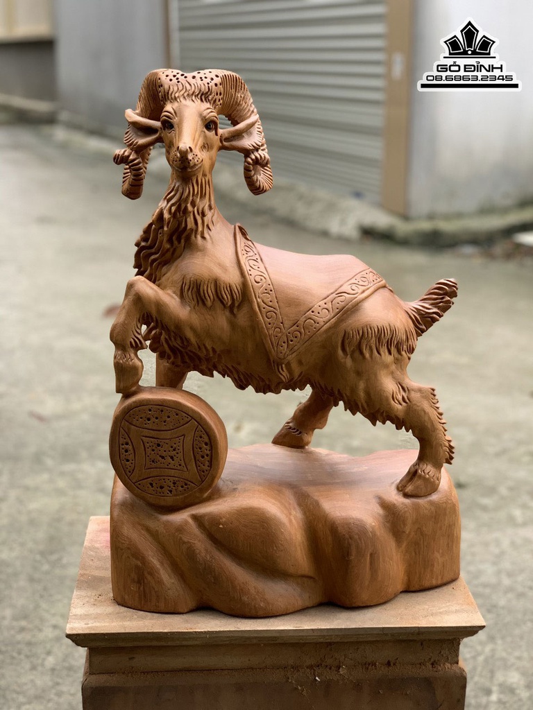 Tượng Dê Tài lộc (Nhất Dương) Gỗ Ngọc Am Cao 57 Ngang 40 Sâu 20 (cm)