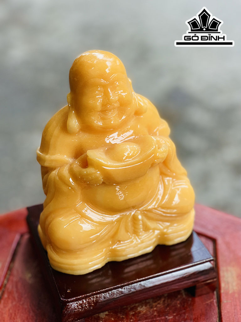 Tượng Di Lặc Cầm Đĩnh Tiền Đá Ngọc Hoàng Long Cao 15 (cm)