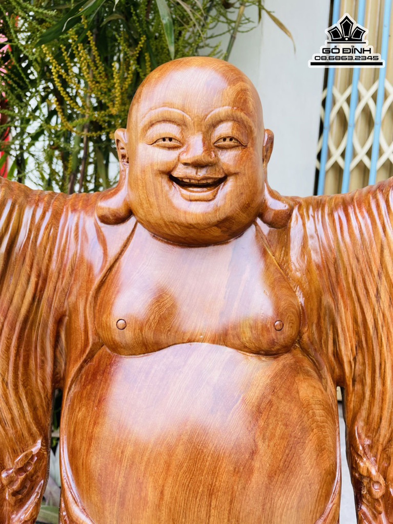 Tượng Di Lặc Chúc Phúc Gỗ Ngọc Am Liền Khối Cao 95 Ngang 48 Sâu 28 (cm)