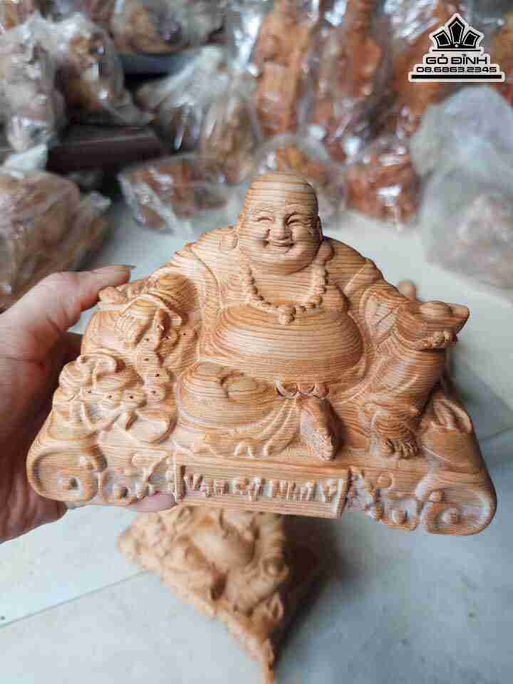 Tượng Di Lặc Để Xe Gỗ Ngọc Am được coi là biểu tượng của tiền tài, thoải mái, hòa bình, thịnh vượng và may mắn. Mỡ bụng lớn là một biểu tượng của lòng quảng đại, hạnh phúc, may mắn và niềm vui ngây thơ vô tội mãn.