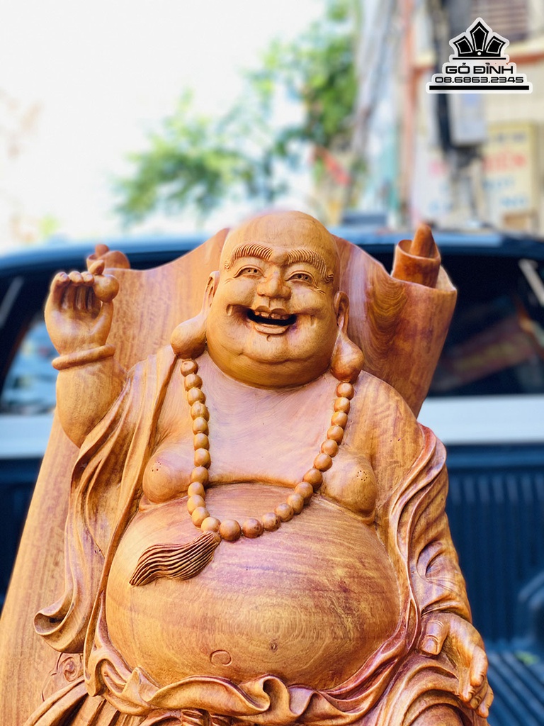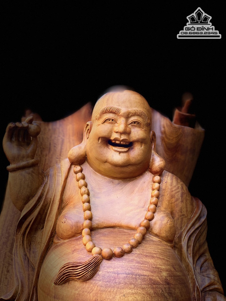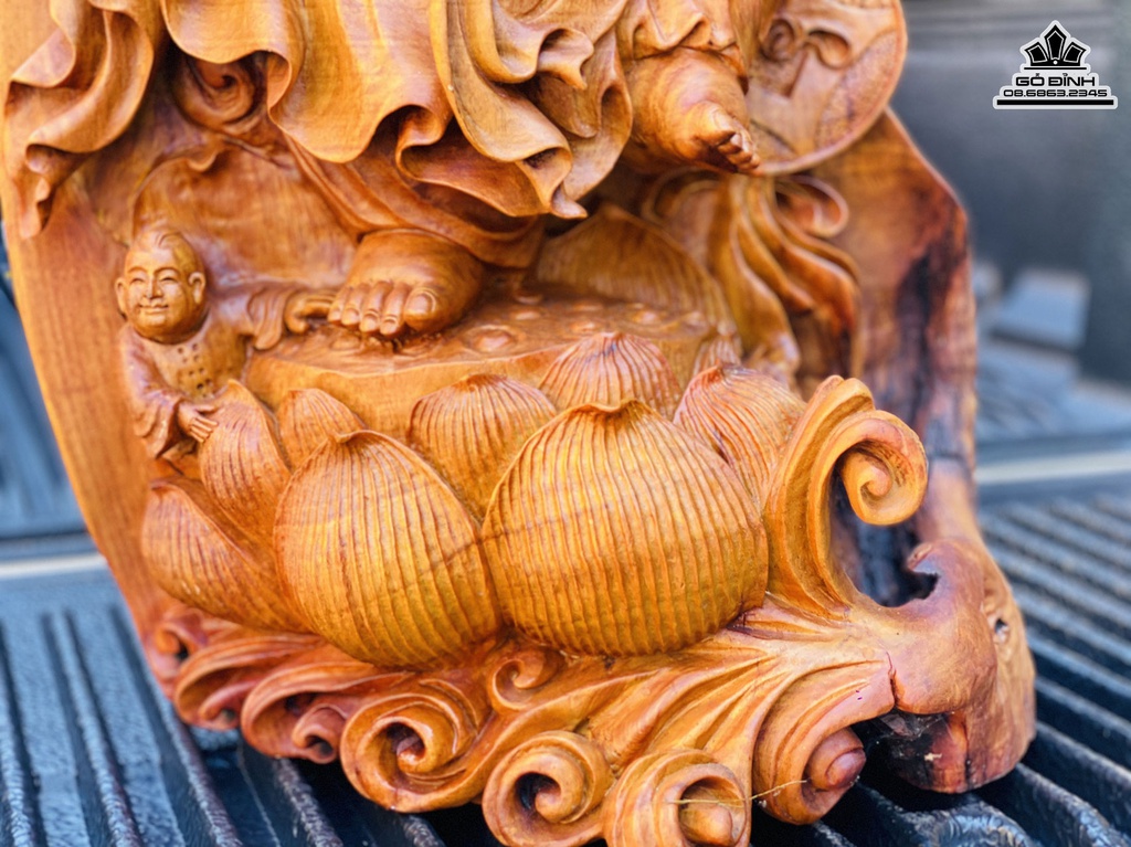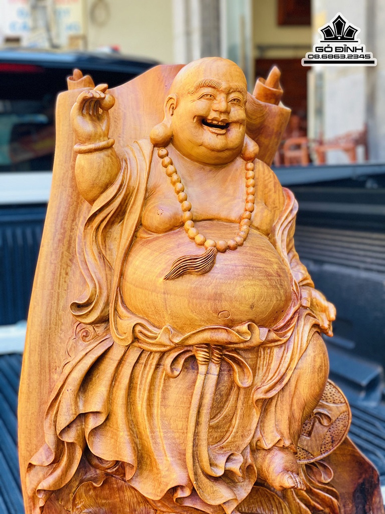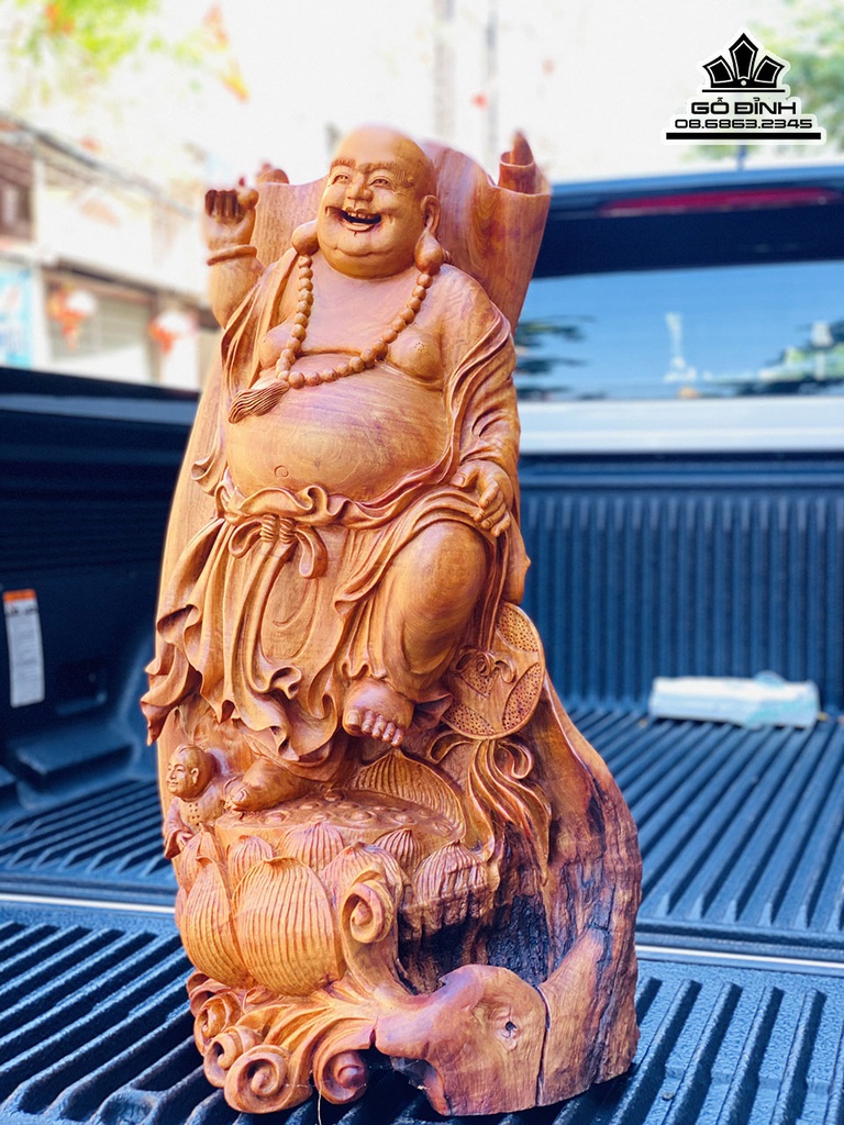 Tượng Di Lặc Đứng Đài Sen Gỗ Hương Ta Liền Khối