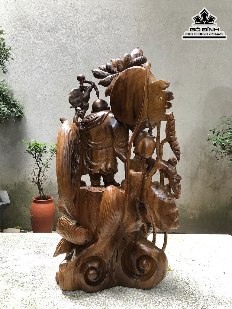 Tượng Di Lặc Đứng Hoa Sen Gỗ Bách Xanh Cao 80 Ngang 42 Sâu 33 (cm)
