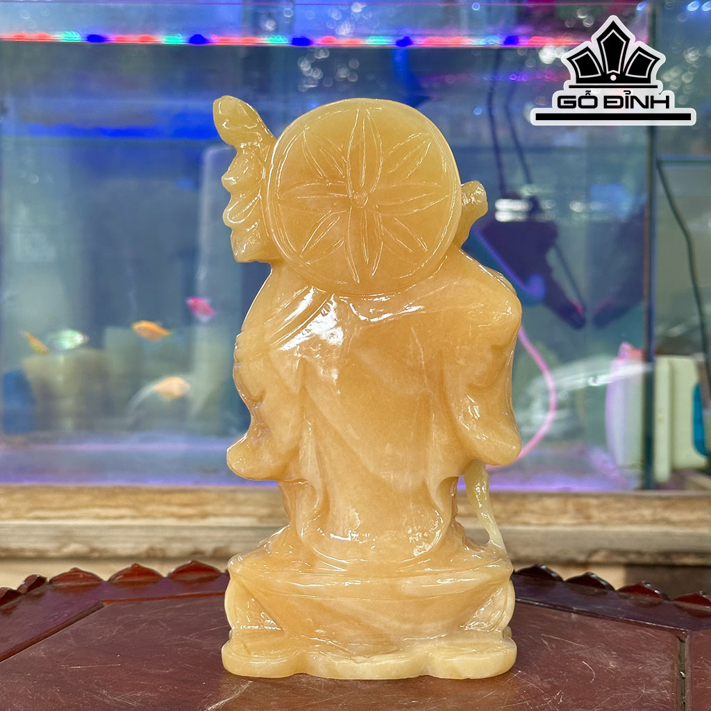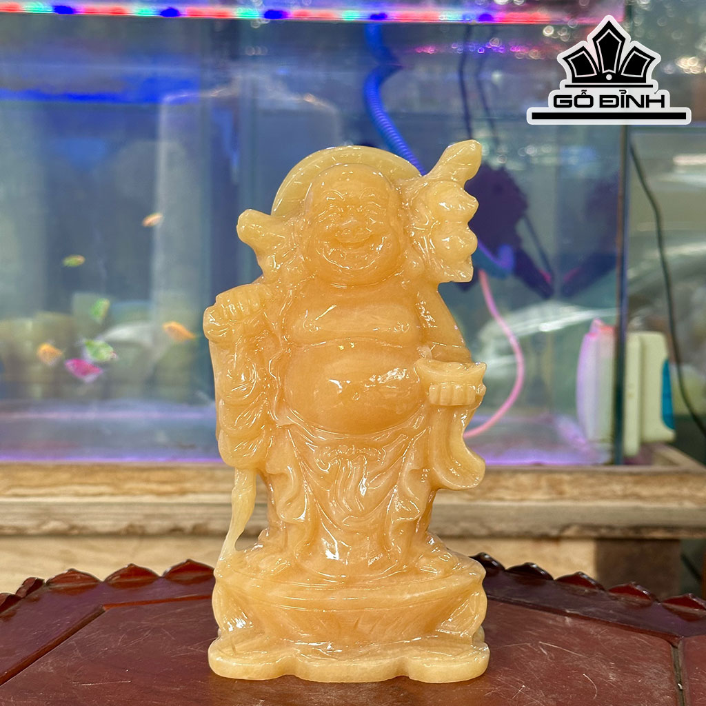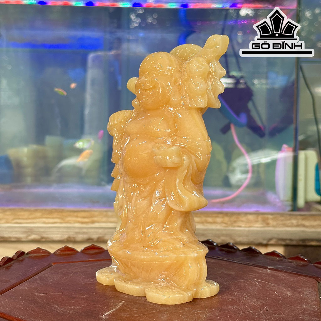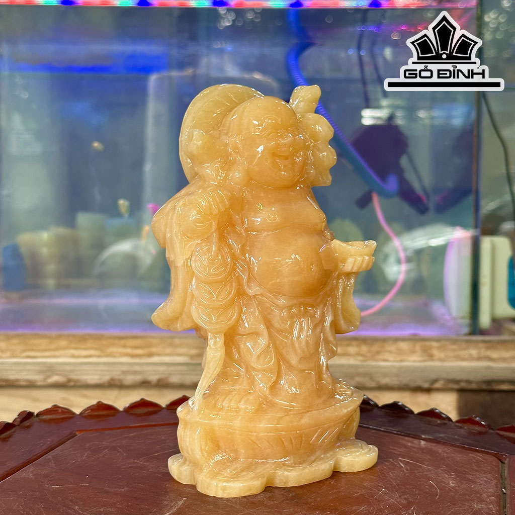 Tượng Di Lặc Gánh Cành Đào Đá Ngọc Hoàng Long Cao 20 Ngang 10 (cm)