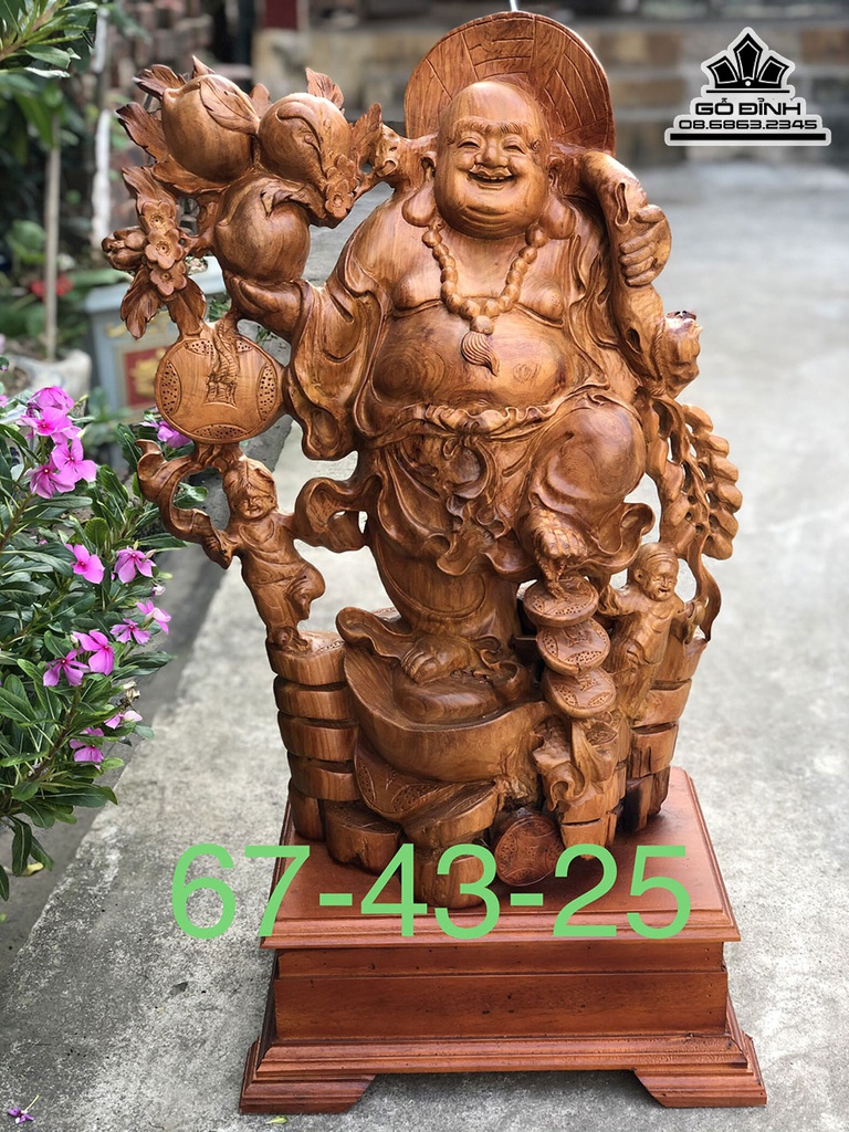 Tượng Di Lặc Gỗ Hương Việt Cao 67 Ngang 43 Sâu 25 (cm)