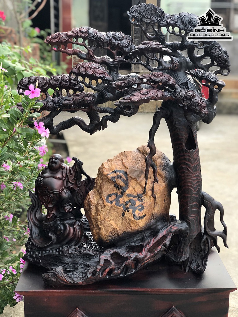 Tượng Di Lặc Gỗ Trắc Cao 80 Ngang 64 Sâu 35 Cao Kỷ 30 (cm)