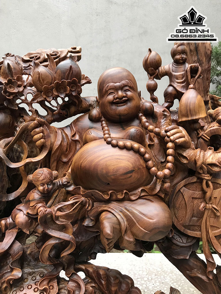 Tượng Di Lặc Kéo Bao Tiền Gỗ Bách Xanh
