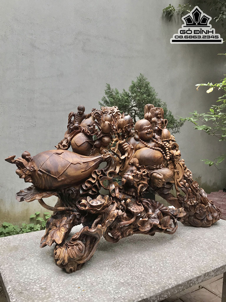 Tượng Di Lặc Kéo Bao Tiền Gỗ Bách Xanh Cao 66 Ngang 105 Sâu 40 (cm)
