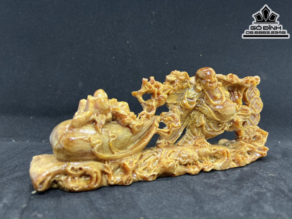 Tượng Di Lặc Kéo Bao Tiền Gỗ Huyết Long