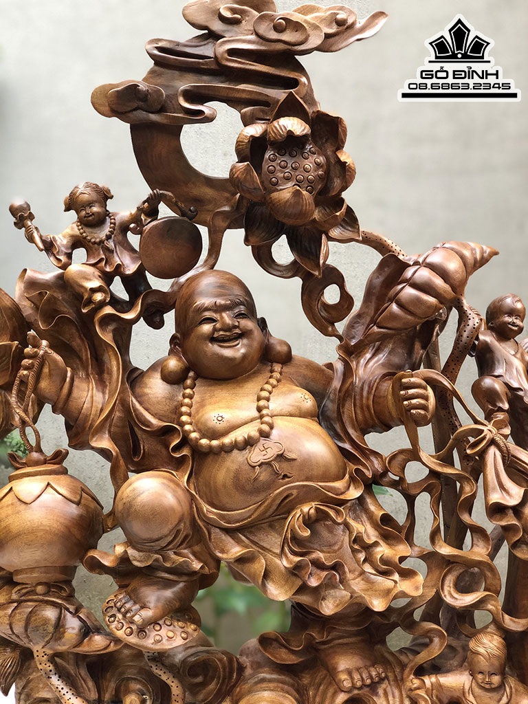 Tượng Di Lặc Kéo Bao Tiền Gỗ Xá Xị Cao 73 Ngang 83 Sâu 30 (cm)