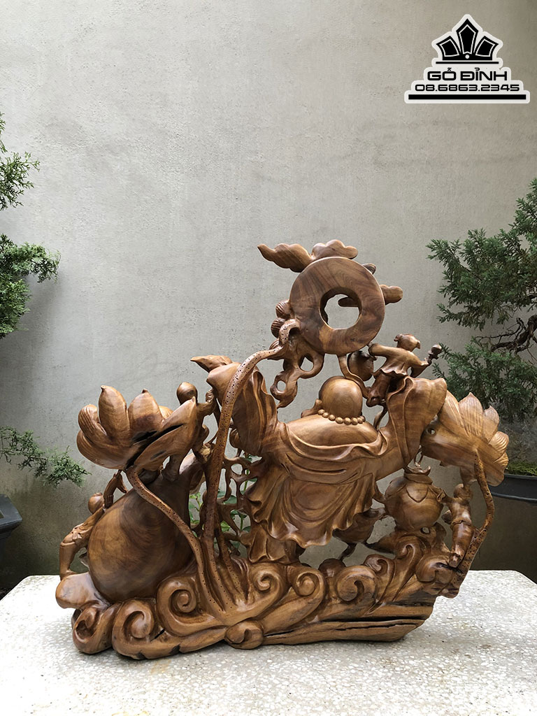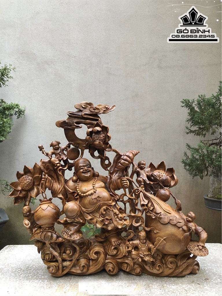 Tượng Di Lặc Kéo Bao Tiền Gỗ Xá Xị