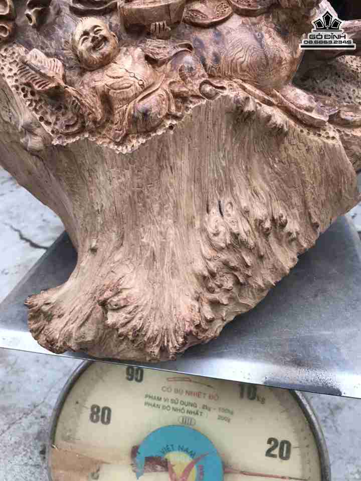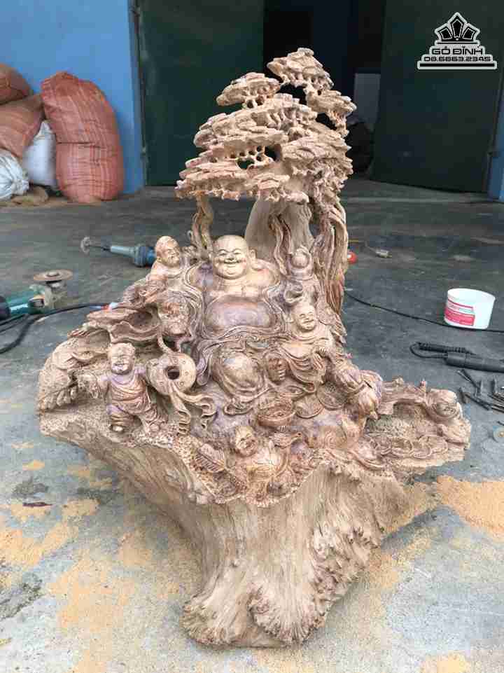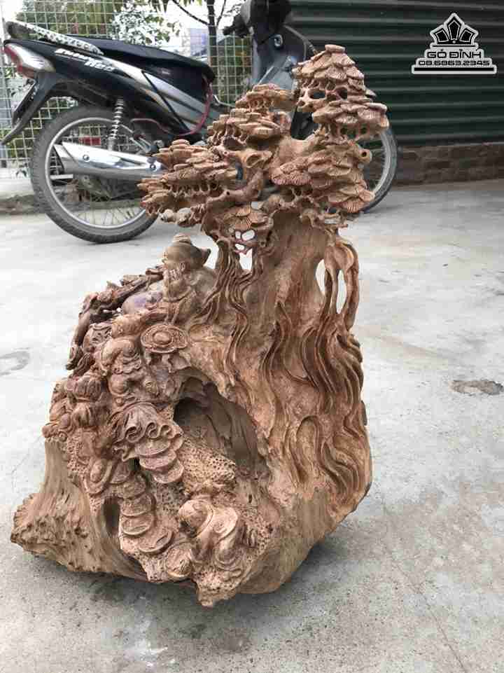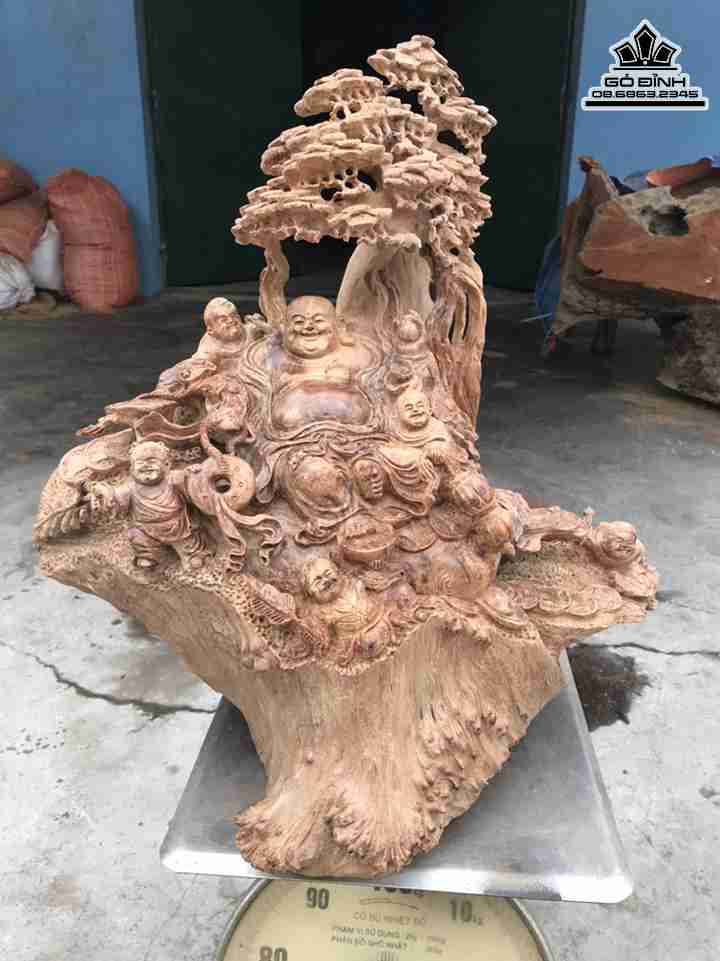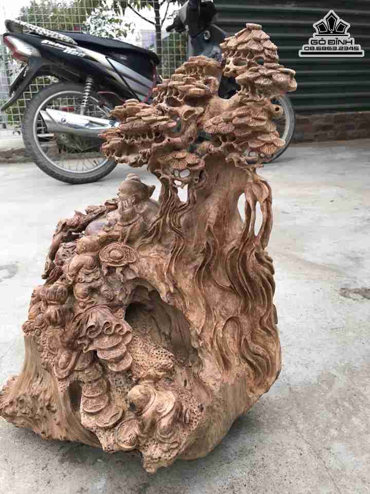 Tượng Di lặc Ngồi Gốc Tùng Gỗ Ngọc Am Cao 55 Ngang 50 Sâu 45 (cm)