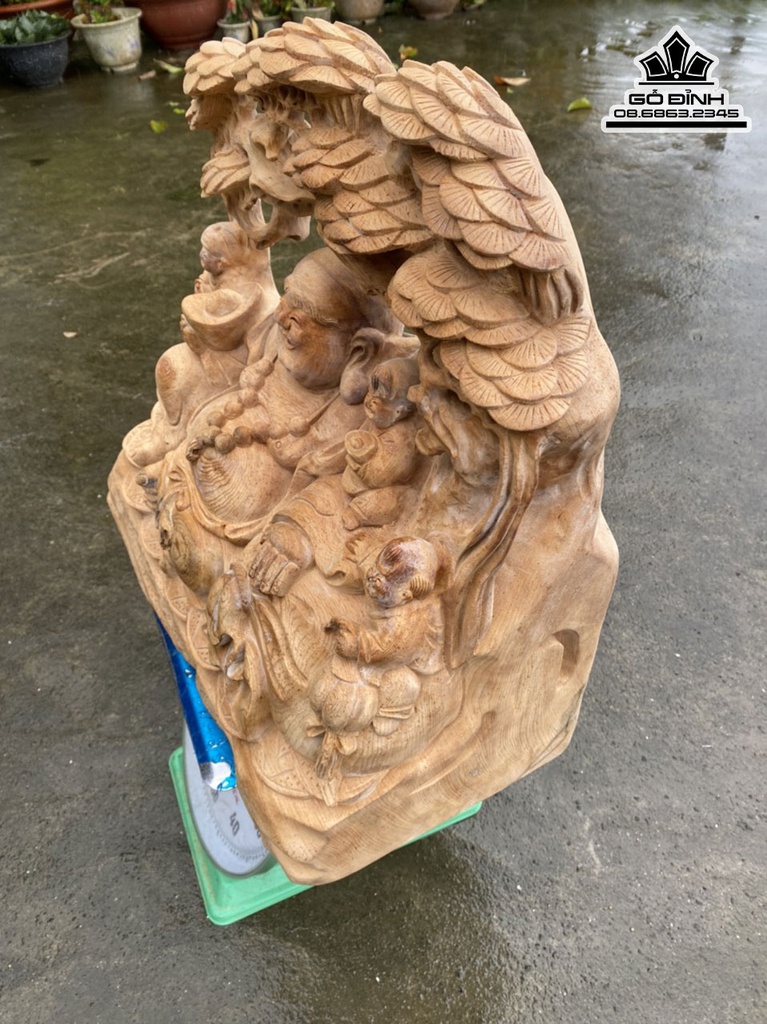 Tượng Di Lặc Ngồi Gốc Tùng Gỗ Ngọc Am Hà Giang