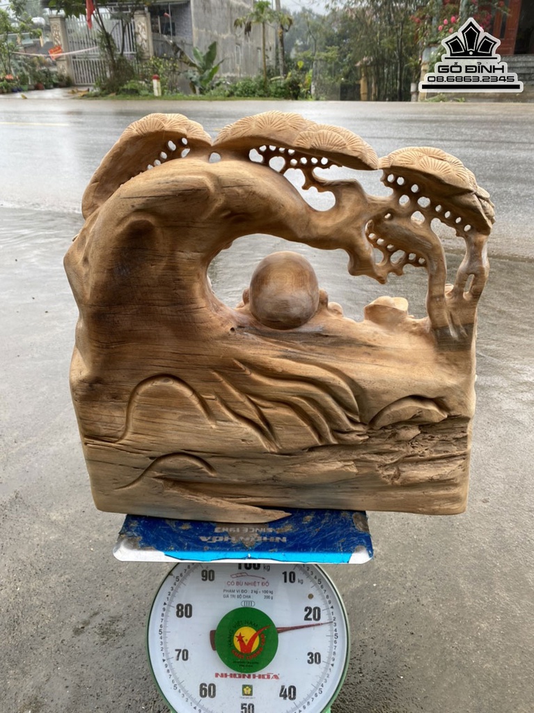 Tượng Di Lặc Ngồi Gốc Tùng Gỗ Ngọc Am Hà Giang Cao 50 Ngang 50 Sâu 26 (cm)