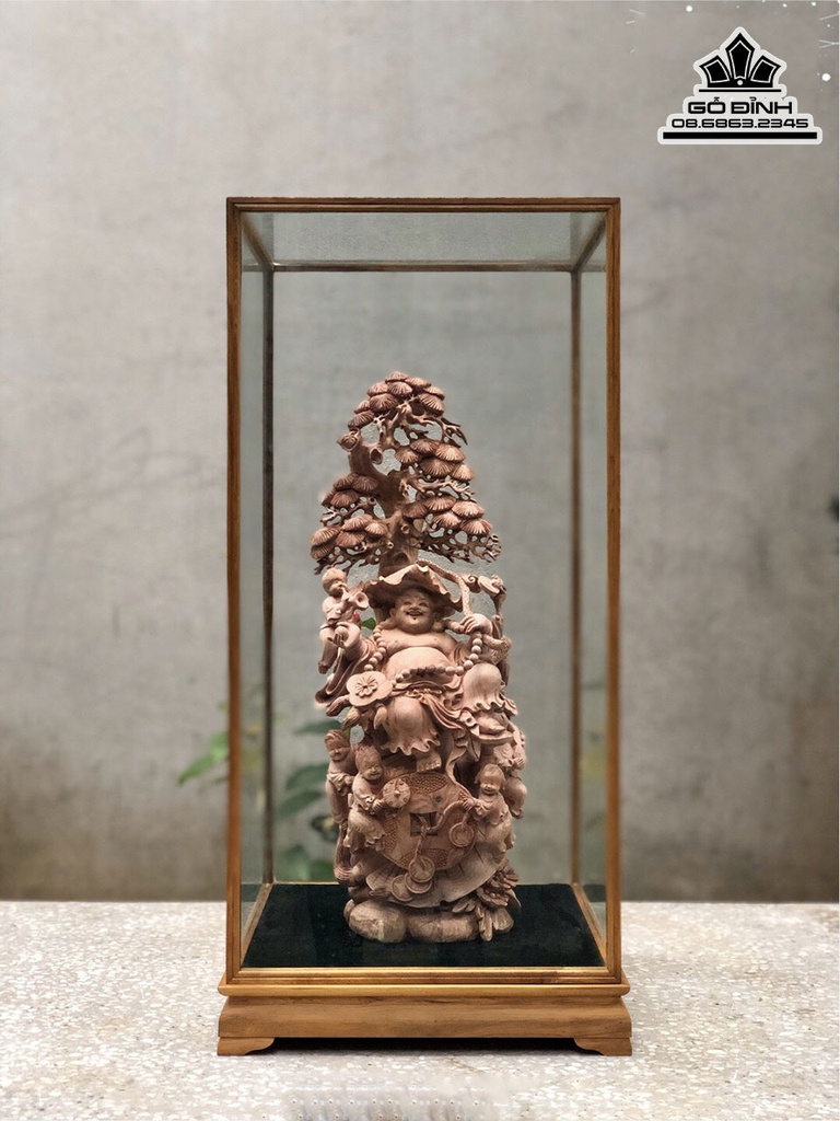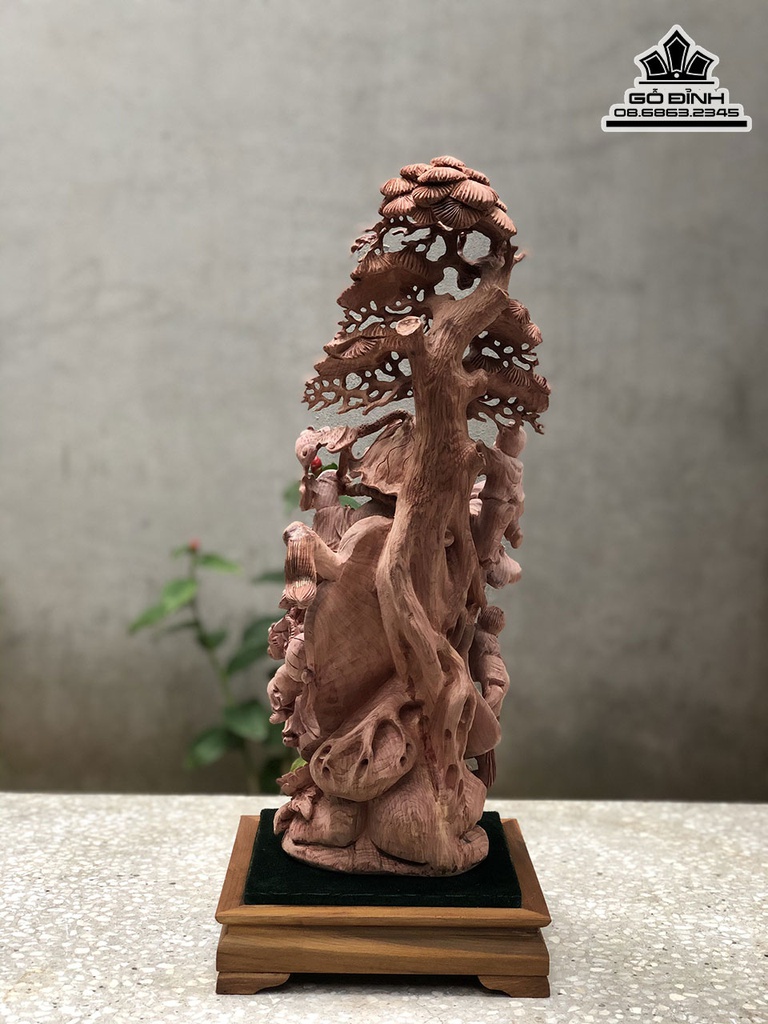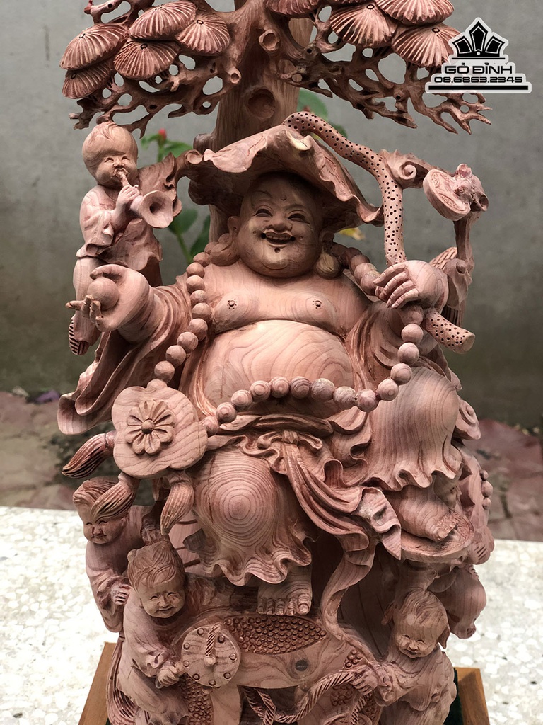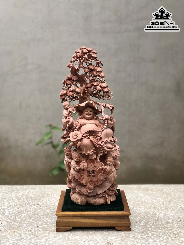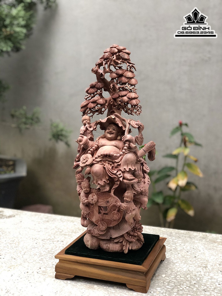 Tượng Di Lặc Ngồi Gốc Tùng Gỗ Tùng Đỏ