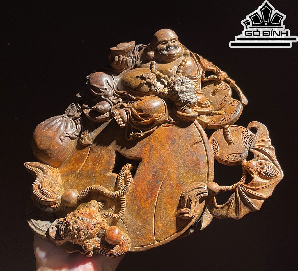 Tượng Di Lặc Ngồi Kim Tiền Gỗ Nu Hương Cao 19 Ngang 25 Sâu 13 (cm)