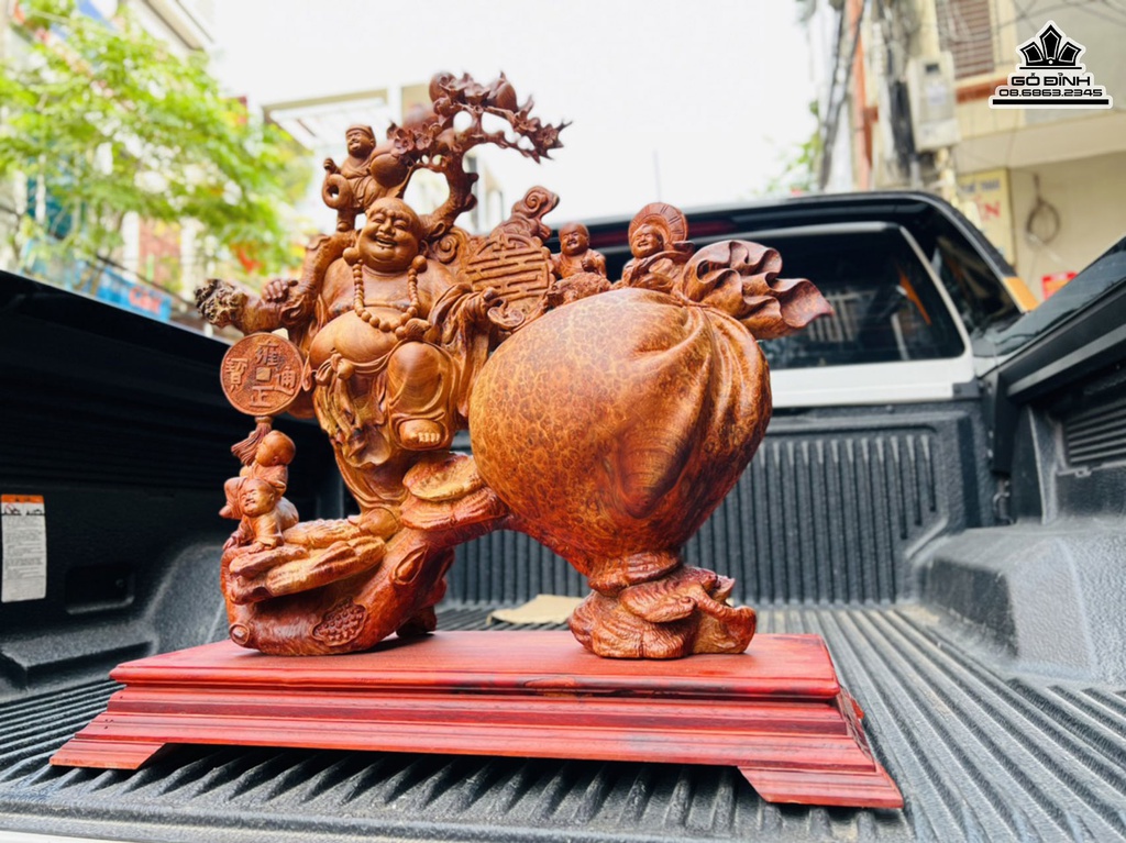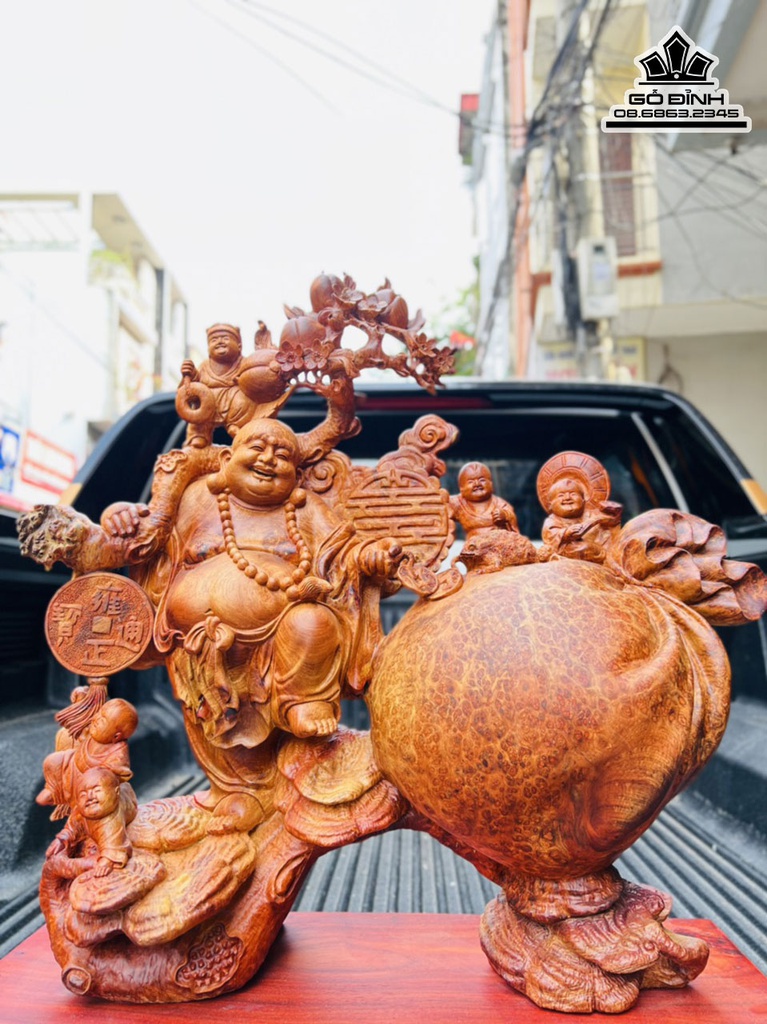 Tượng Di Lặc Ngũ Phúc Đứng Gánh Đào Gỗ Nu Hương
