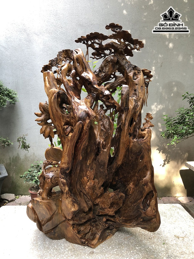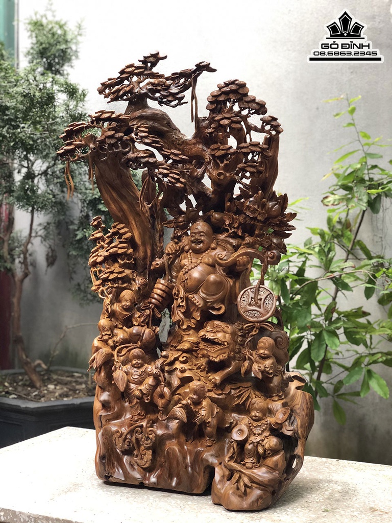 Tượng Di Lặc Ngũ Phúc Đứng Gốc Tùng Gỗ Bách Xanh