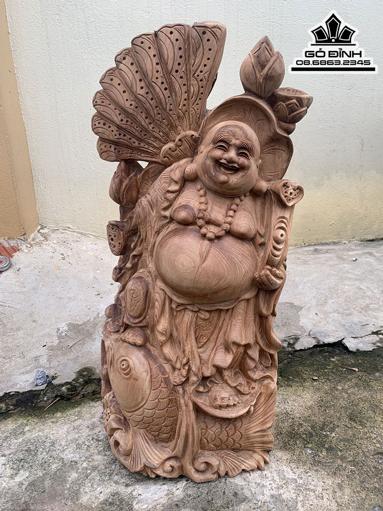 Tượng Di Lặc Phát Tài Gỗ Ngọc Am Cao 54 Ngang 25 Sâu 21 (cm)