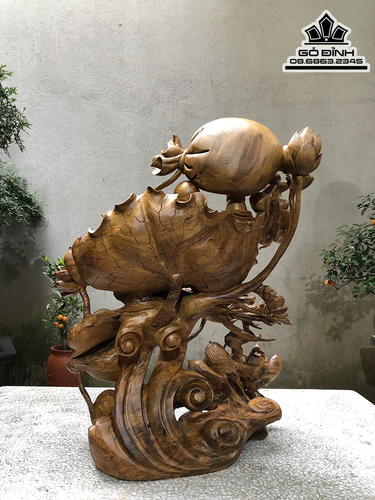 Tượng Di Lặc Tọa Đài Sen Gỗ Bách Xanh
