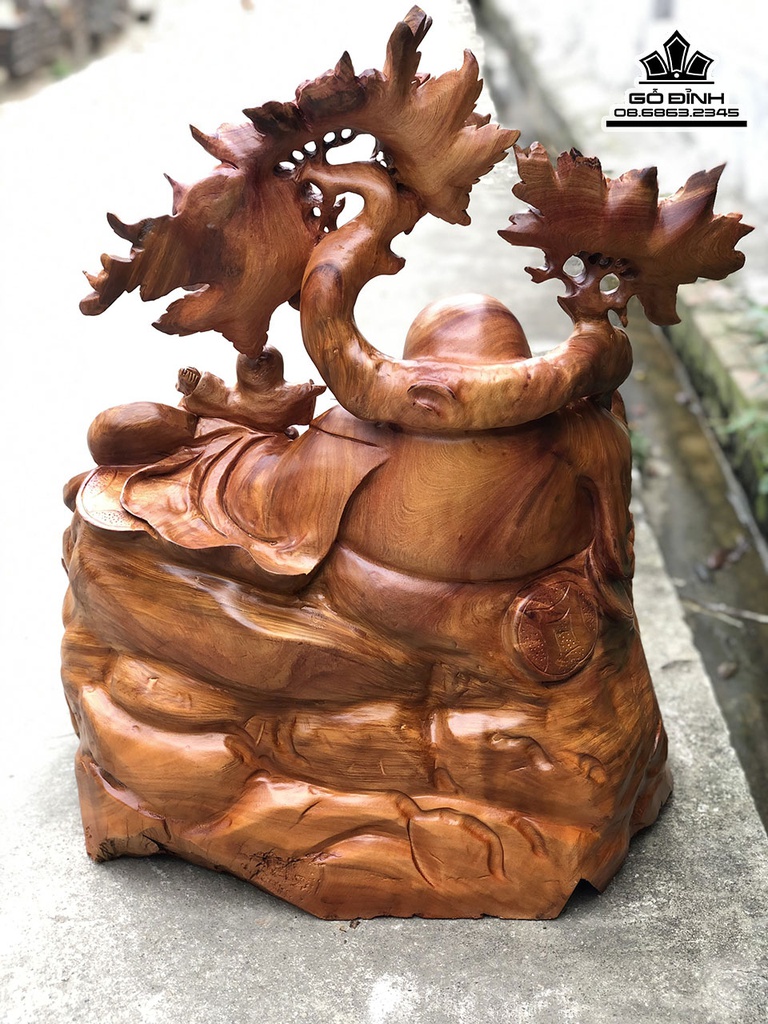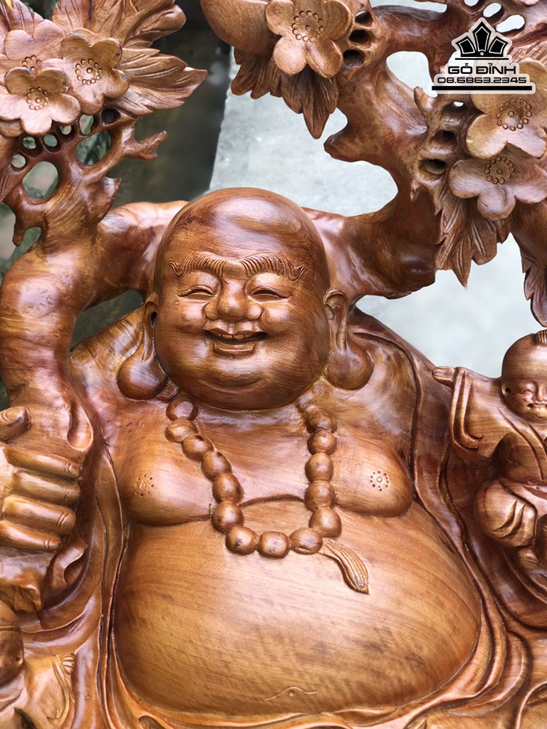 Tượng Di Lặc Vác Cành Đào Gỗ Hương Gia Lai