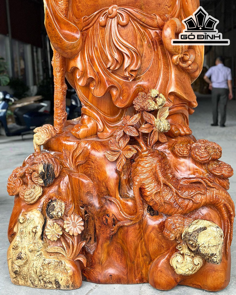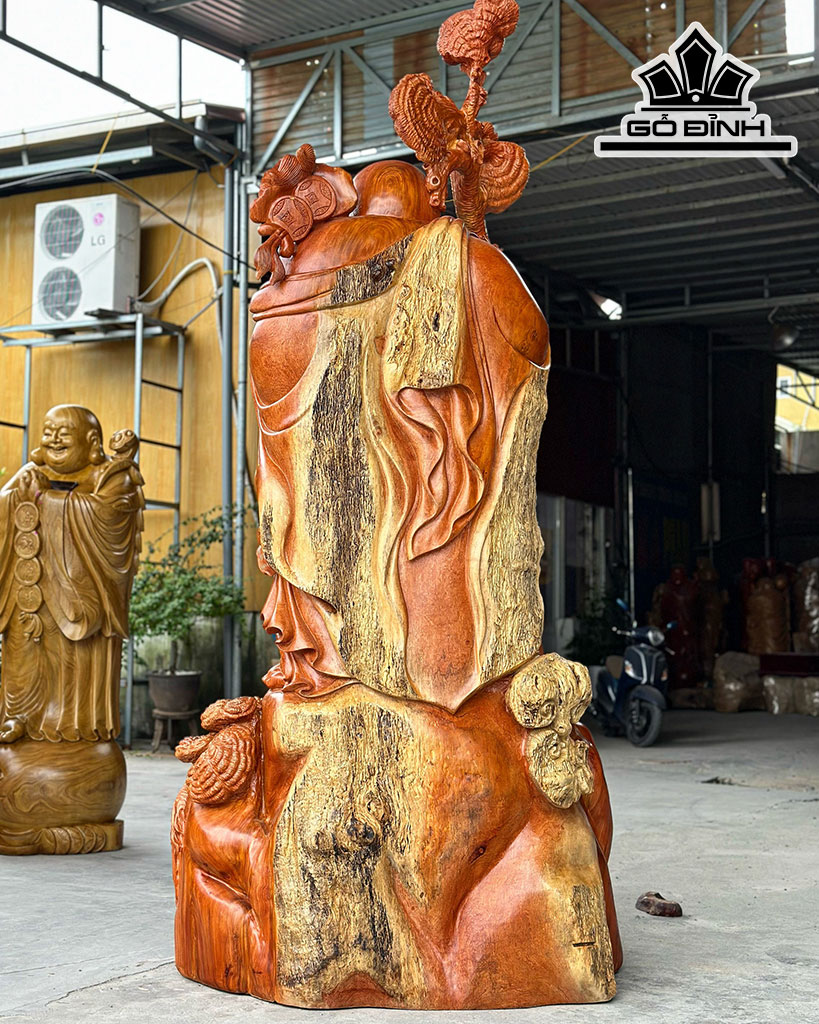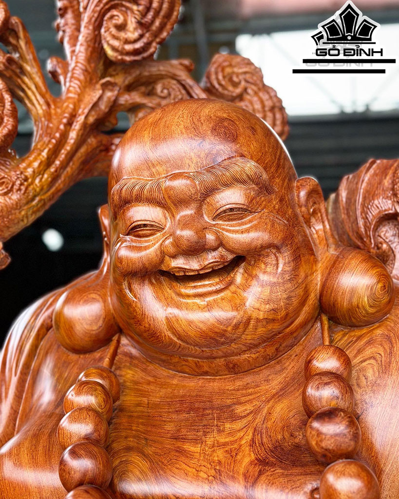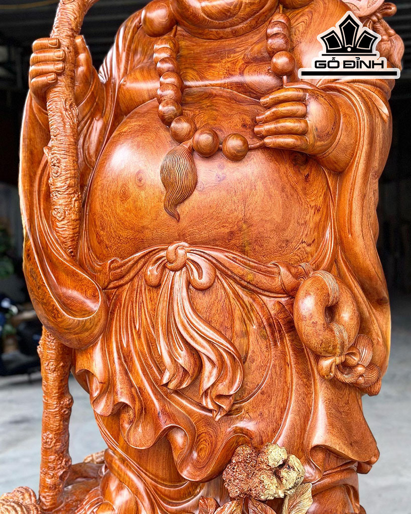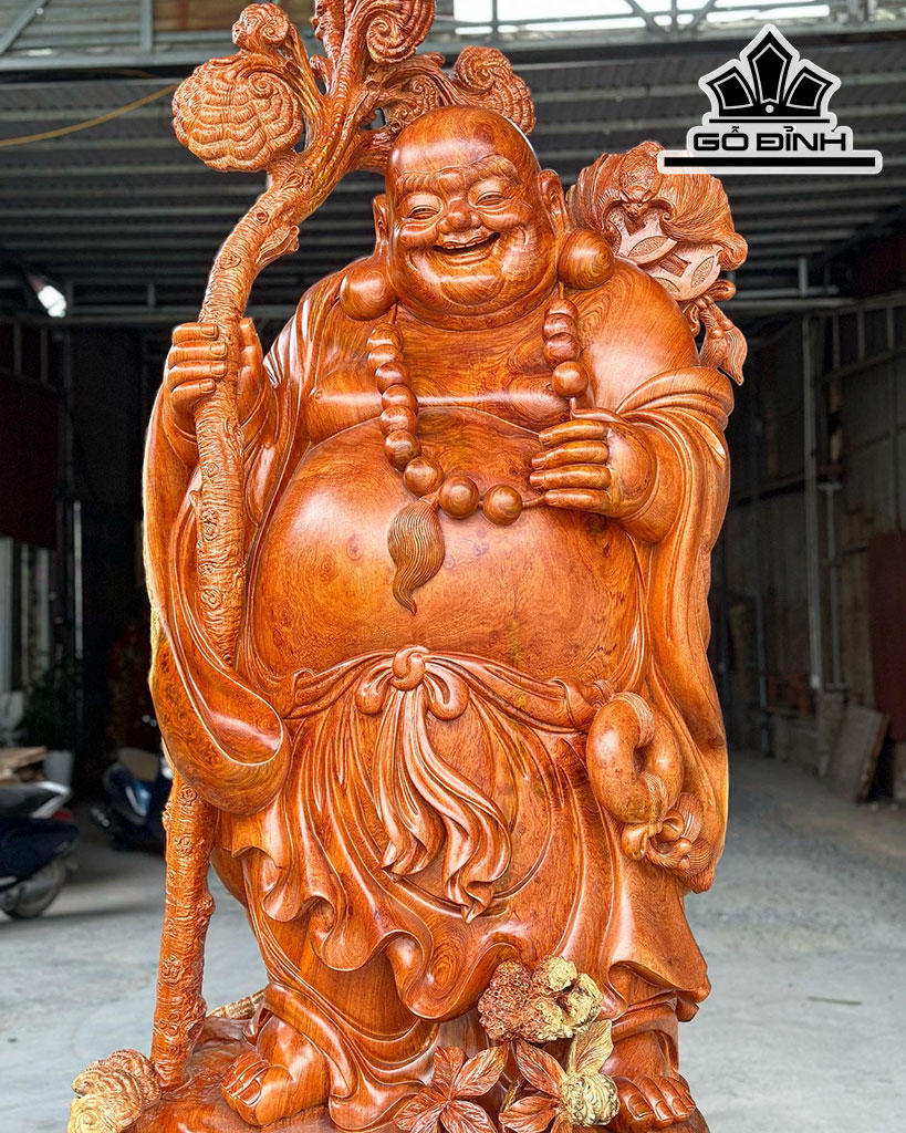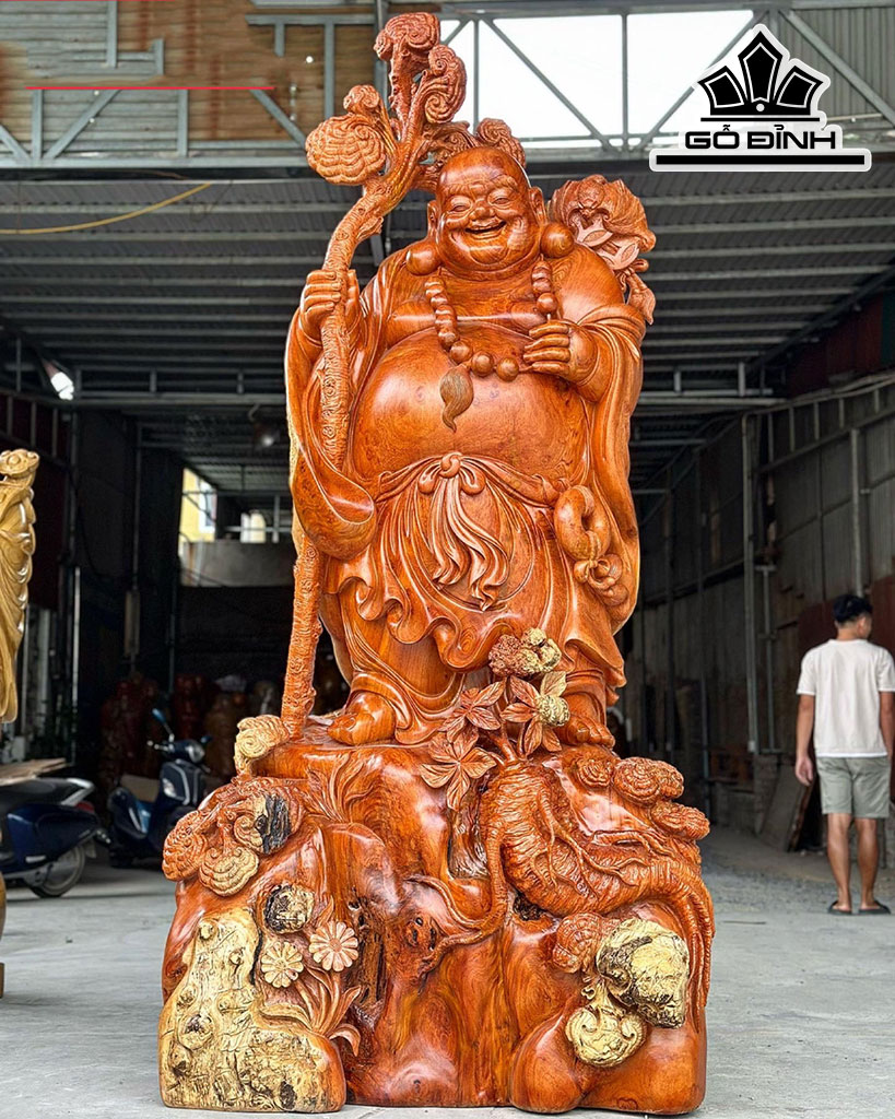 Tượng Di Lặc Vác Nấm Gỗ Hương Cao 256 Ngang 122 Sâu 78 (cm)