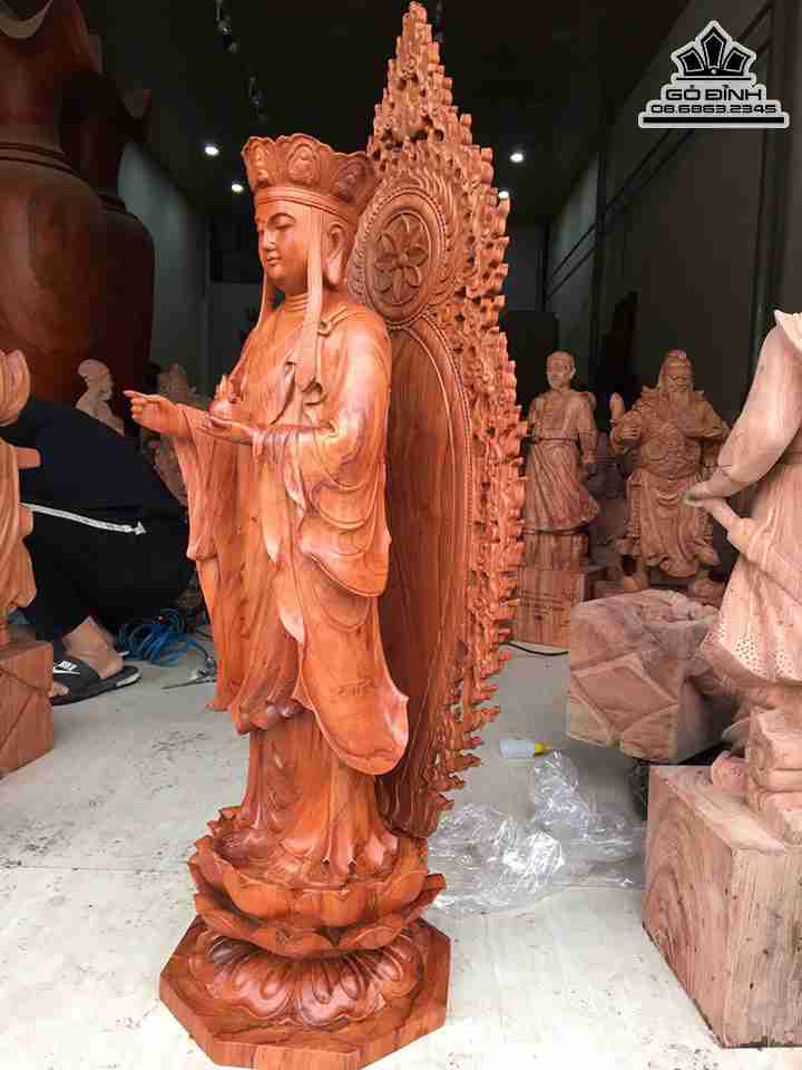 Tượng Địa Tạng Vương Bồ Tát Gỗ Hương Cao 80 Ngang 28 Sâu 28 (cm)