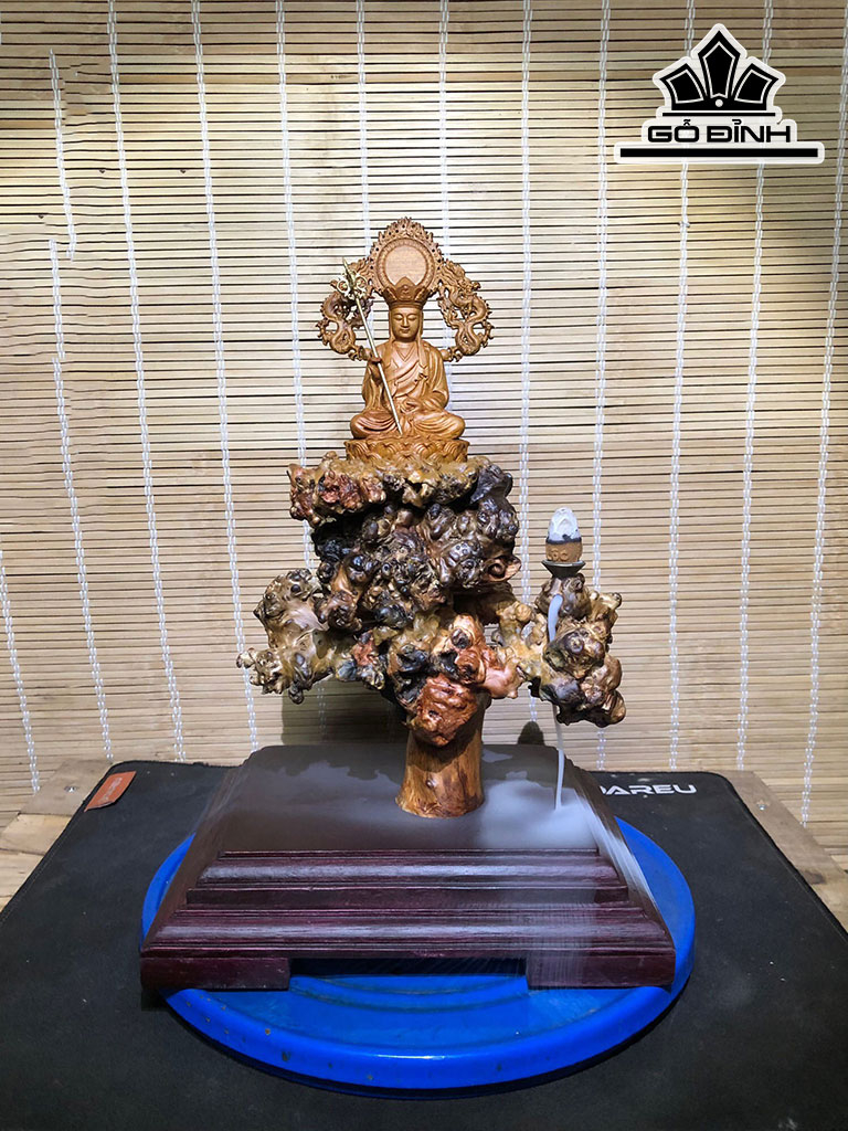 Tượng Địa Tạng Vương Bồ Tát Gỗ Nu Trâm Vàng Cao 33 Ngang 20 Sâu 13 (cm)