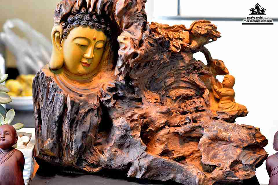 Tượng Diện Phật gỗ bách xanh cao 50 ngang 41 dày 23 (cm)