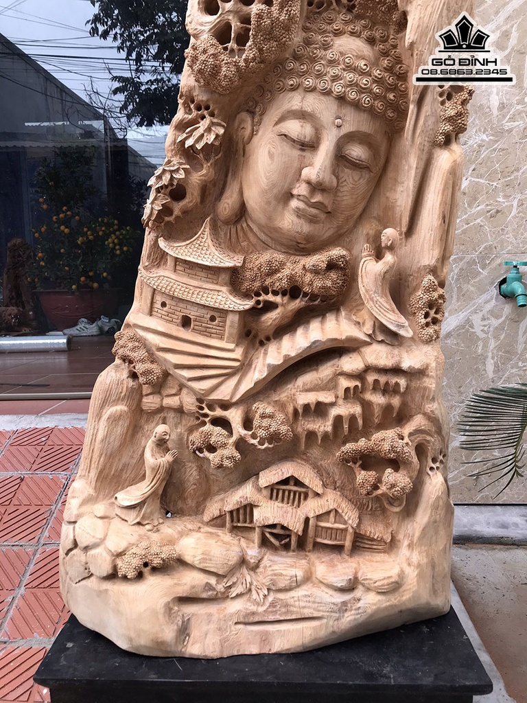 Tượng Diện Phật Gỗ Ngọc Am Cao 120 Ngang 55 Sâu 25 (cm)