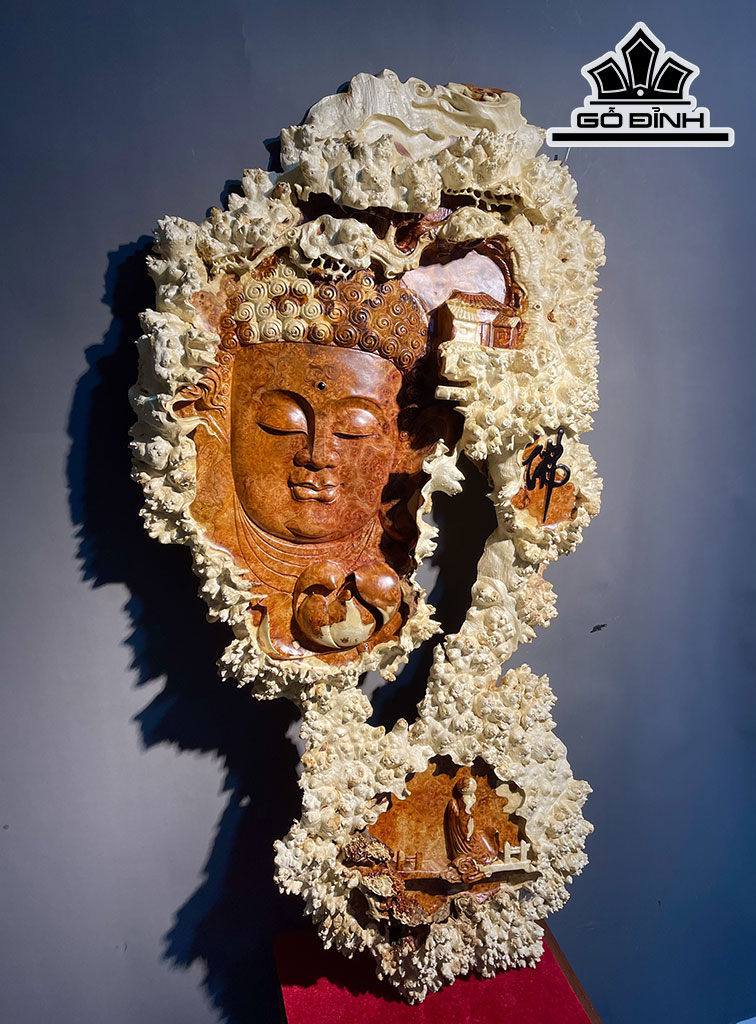 Tượng Diện Phật Tổ Gỗ Nu Hương Cao 108 Ngang 52 Sâu 6 (cm)