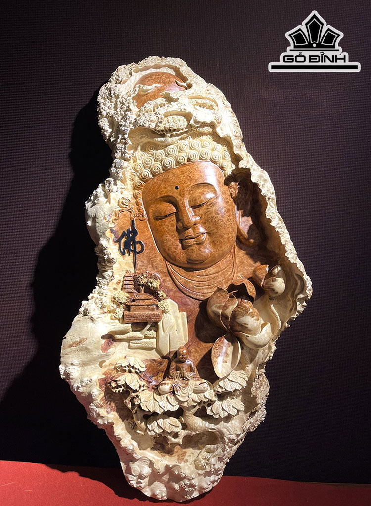 Tượng Diện Phật Tổ Gỗ Nu Hương Cao 90 Ngang 45 Sâu 10 (cm)