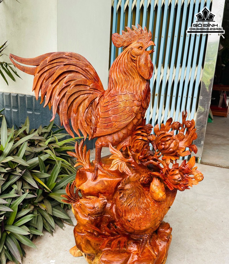 Tượng Gà Gỗ Hương Việt Cao 76 Ngang 55 Sâu 33 (cm)