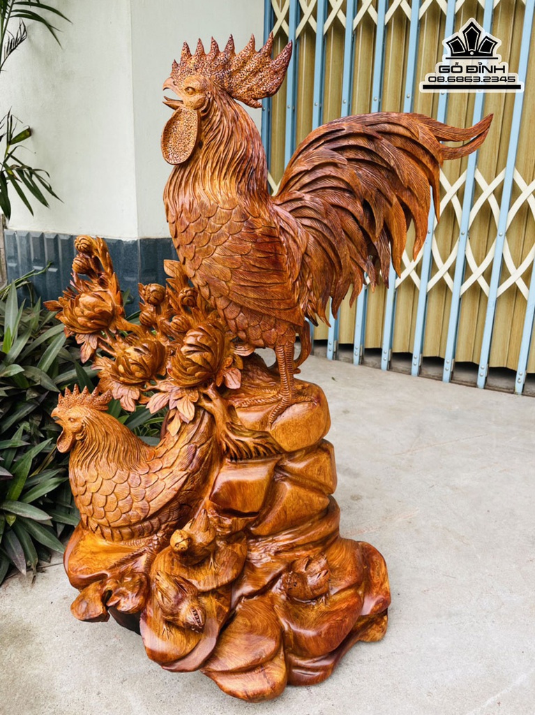 Tượng Gà Gỗ Hương Việt Cao 80 Ngang 56 Sâu 40 (cm)