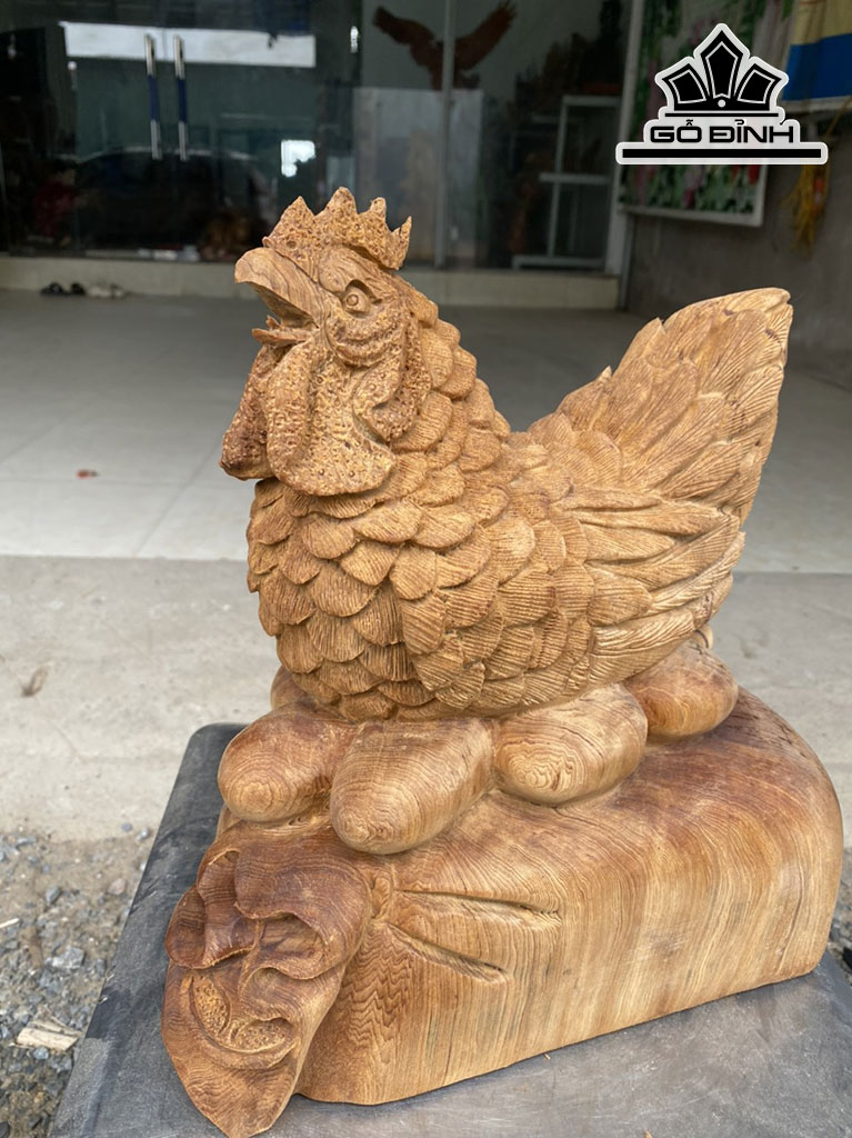 Tượng Gà Mái Đẻ Trứng Gỗ Ngọc Am Cao 30 Ngang 30 Sâu 17 (cm)
