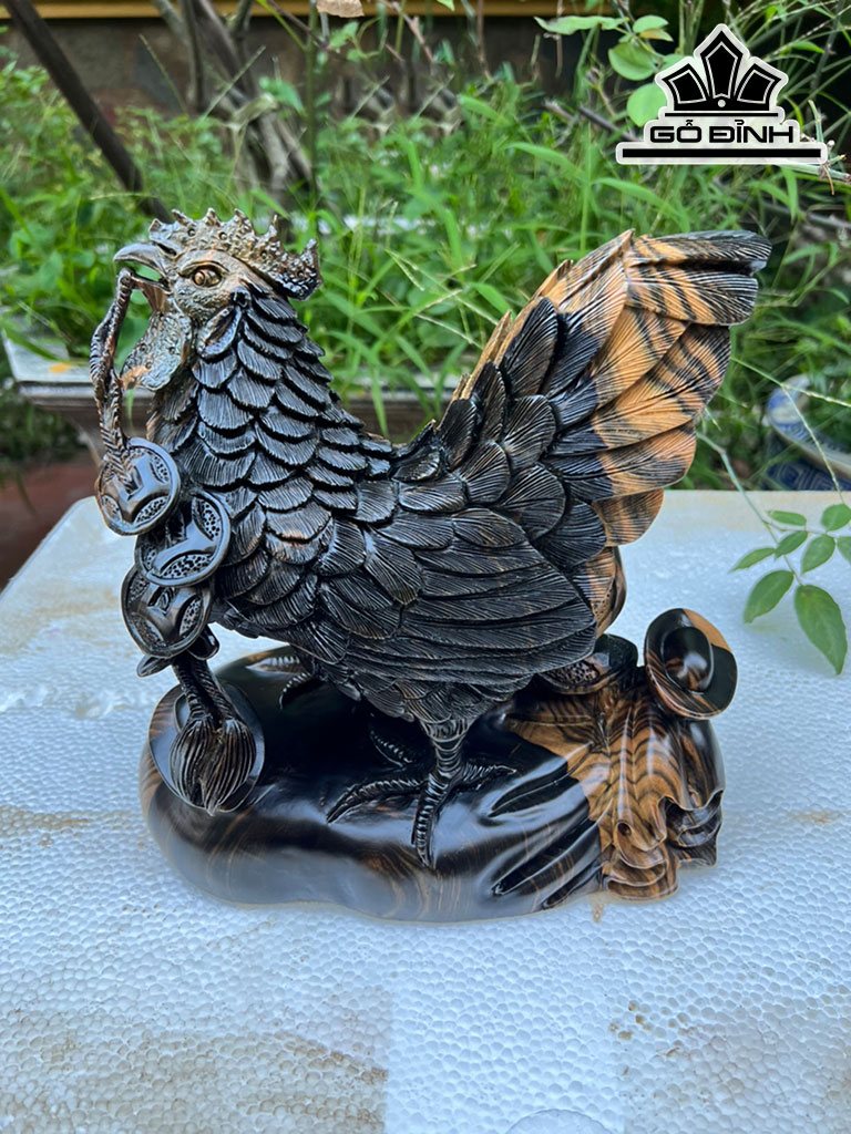 Tượng Gà Mái Gỗ Mun Cao 23 Ngang 22 Sâu 13 (cm)