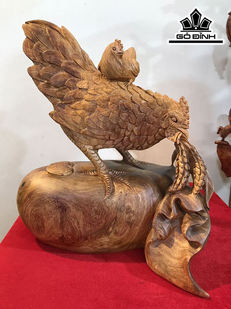 Tượng Gà Phong Thủy Gỗ Hương Cao 35 Ngang 29 Sâu 22 (cm)