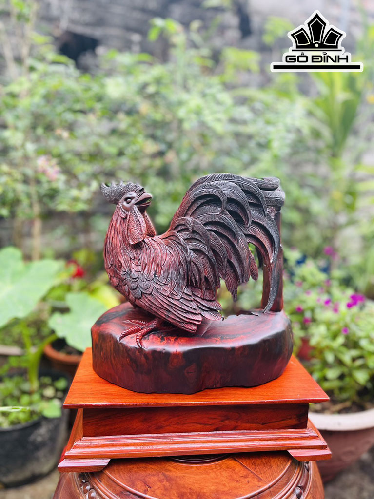 Tượng Gà Tre Gỗ Trắc Cao 27 Ngang 30 Sâu 18 (cm)