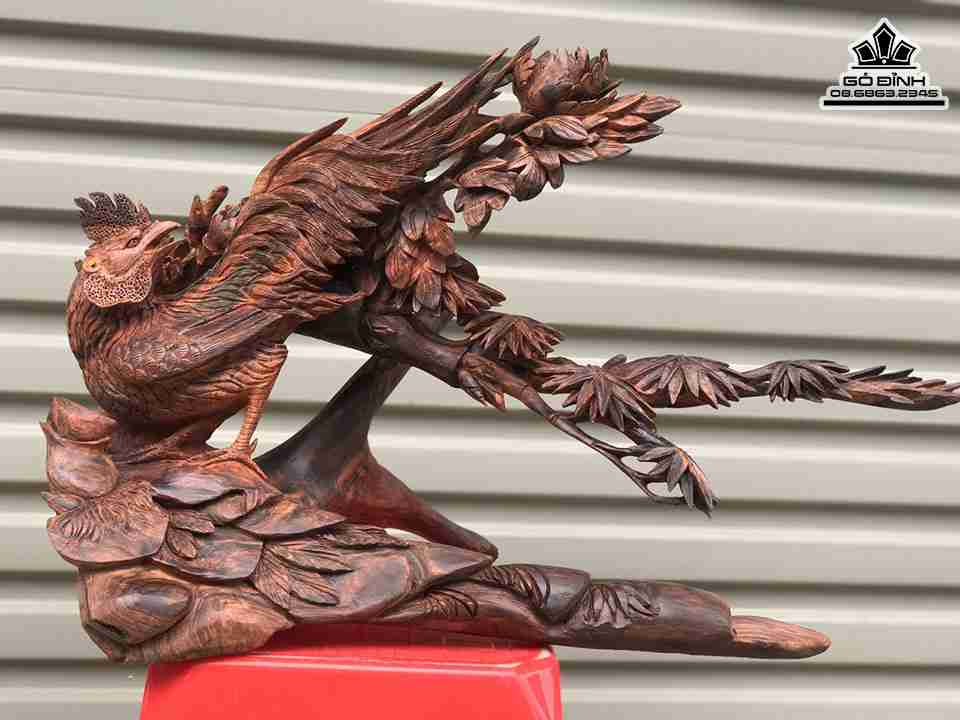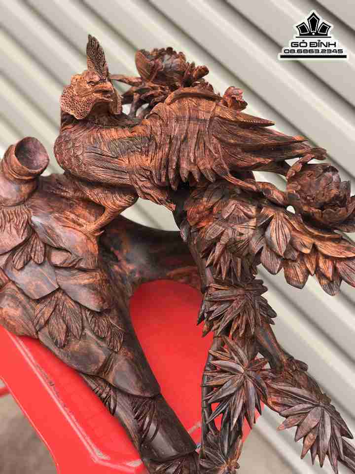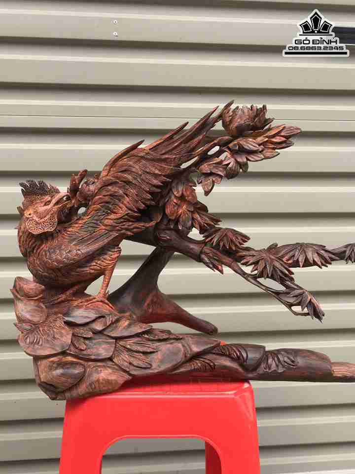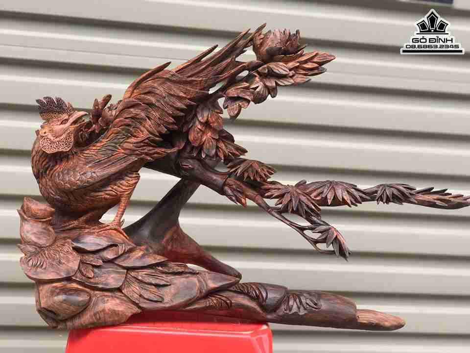 Tượng Gà Trống Cây Trúc Gỗ Trắc Cao 40 Ngang 66 Sâu 35 (cm)