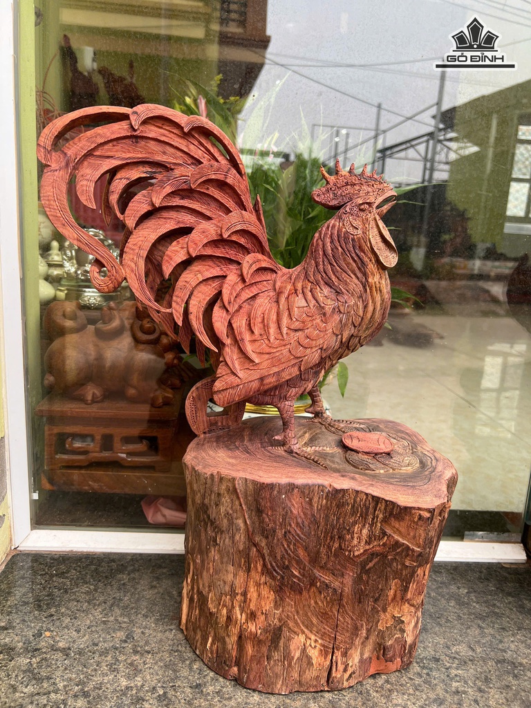 Tượng Gà Trống Gỗ Cẩm Cao 52 Ngang 35 Sâu 20 (cm)