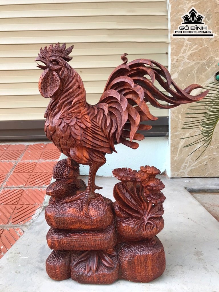 Tượng Gà Trống Gỗ Cẩm Việt Cao 50 Ngang 41 Sâu 17 (cm)