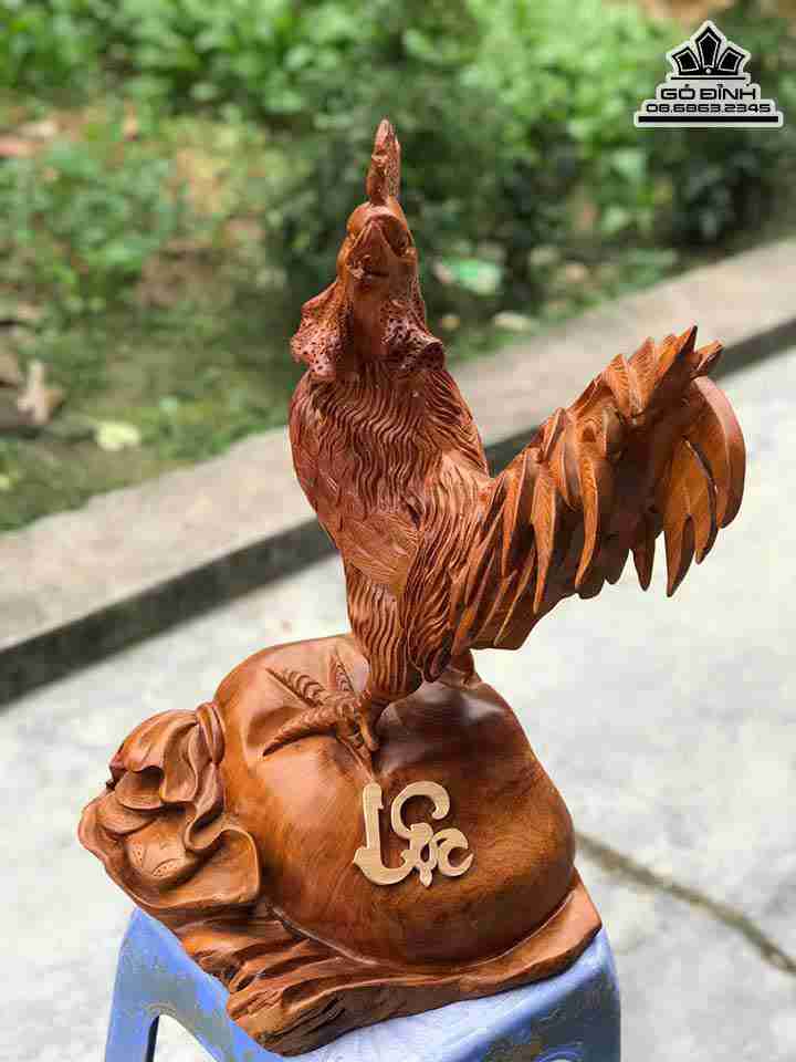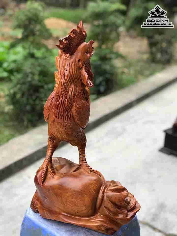 Tượng Gà Trống Gỗ Hương Cao 50 Rộng 35 Dày 25 (cm)