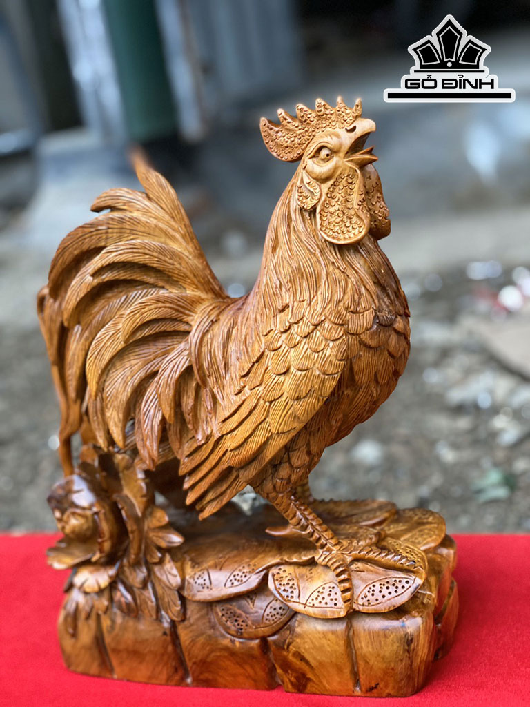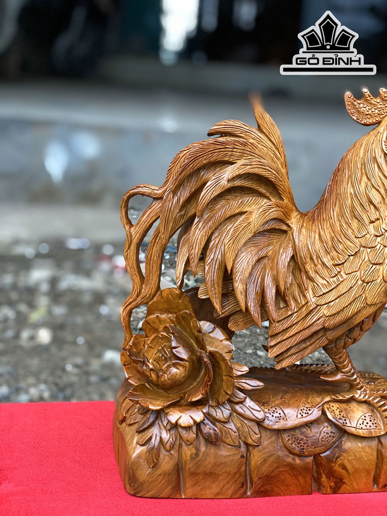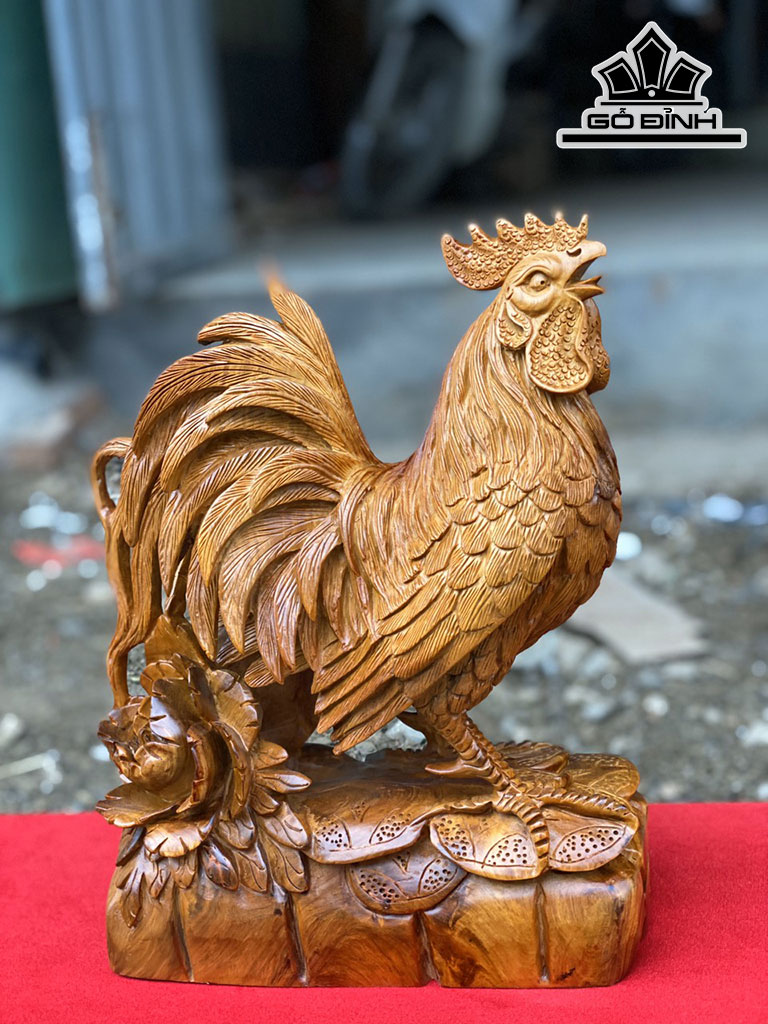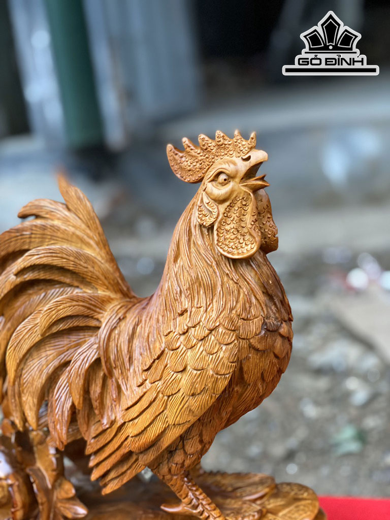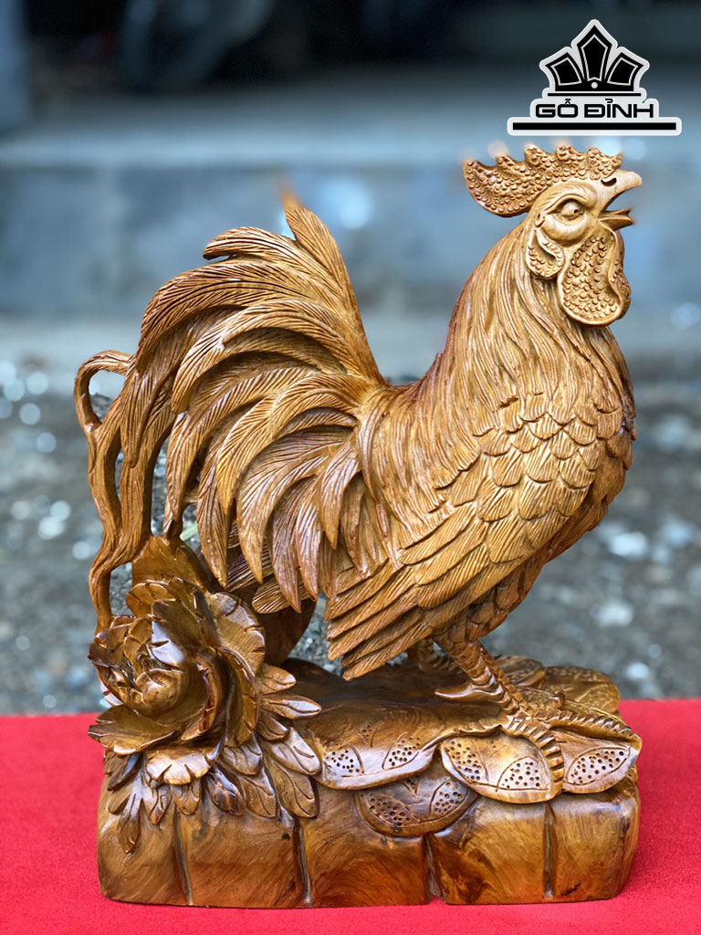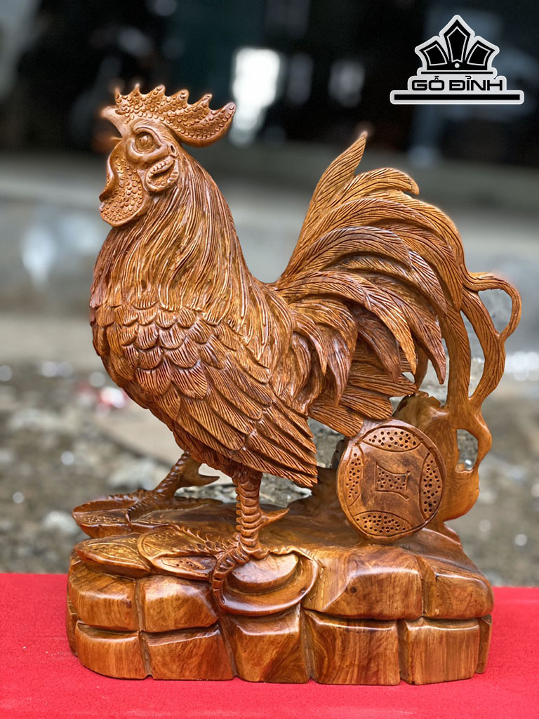 Tượng Gà Trống Gỗ Hương Cao 32 Ngang 24 Sâu 12 (cm)