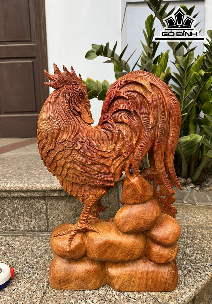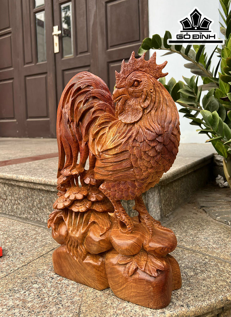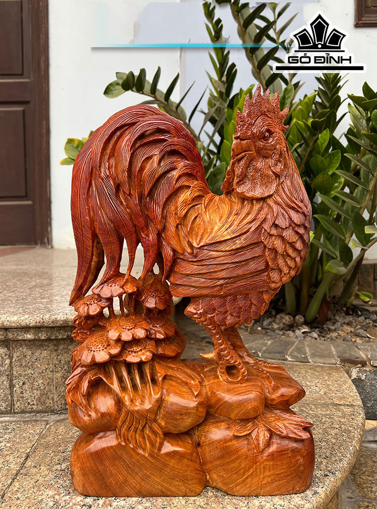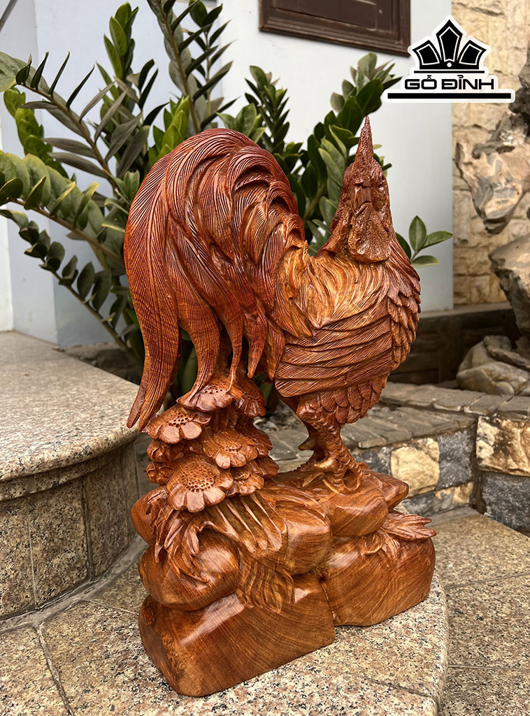 Tượng Gà Trống Gỗ Hương Cao 45 Ngang 27 Sâu 11 (cm)