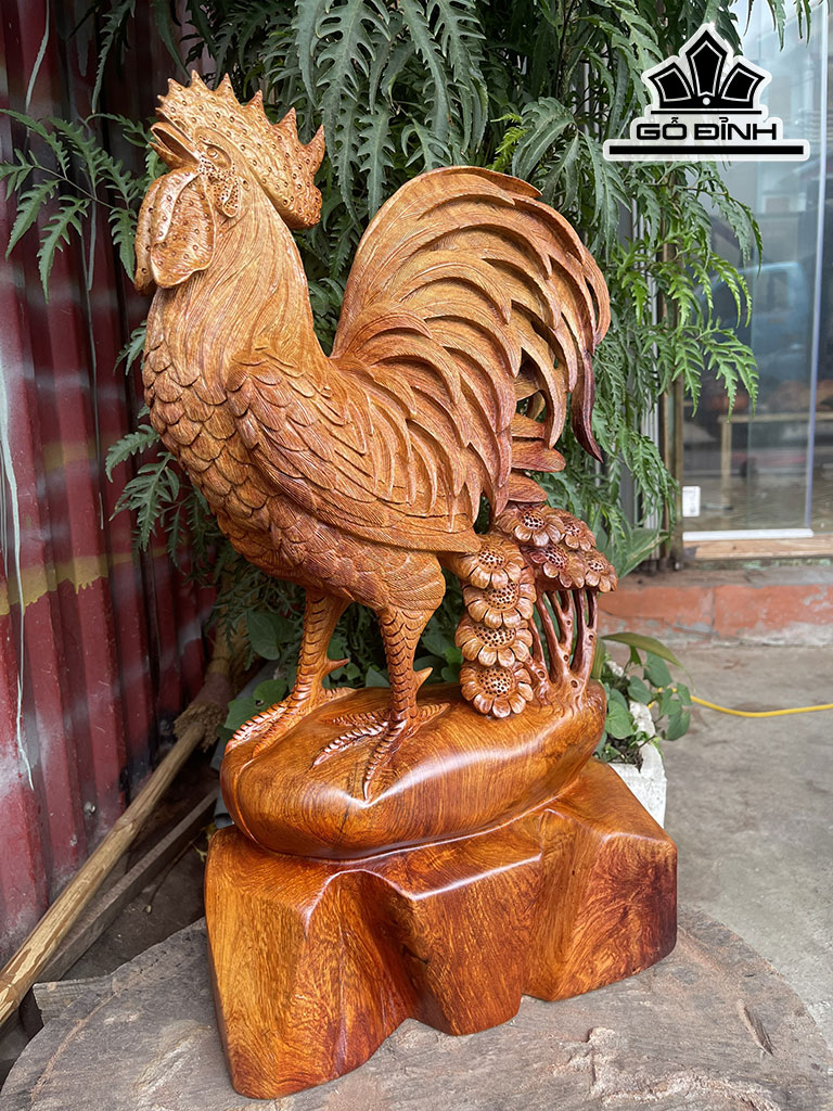 Tượng Gà Trống Gỗ Hương Cao 57 Ngang 33 Sâu 14 (cm)